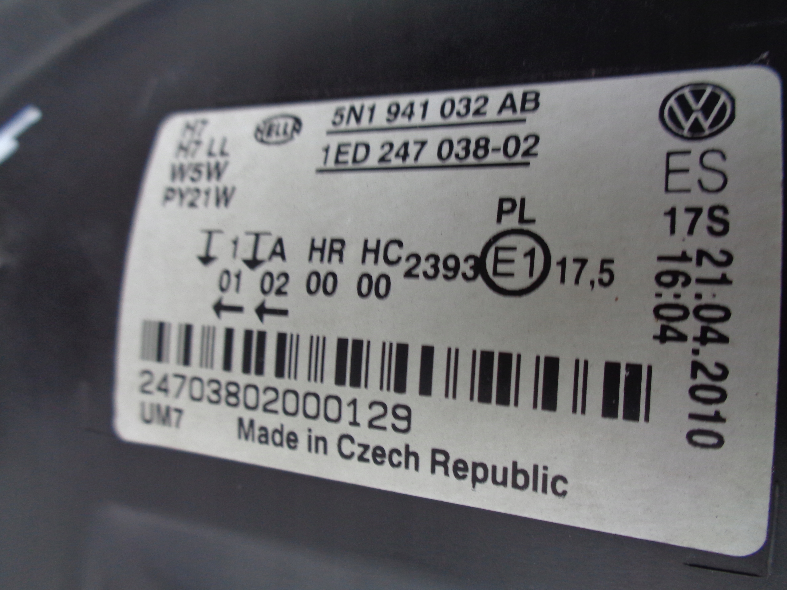 Каталожный номер детали: 5N0941032AB, LAMPA, PRAWA, REFLEKTOR, VW, TIGUAN, 5N, 5N0, 07-11