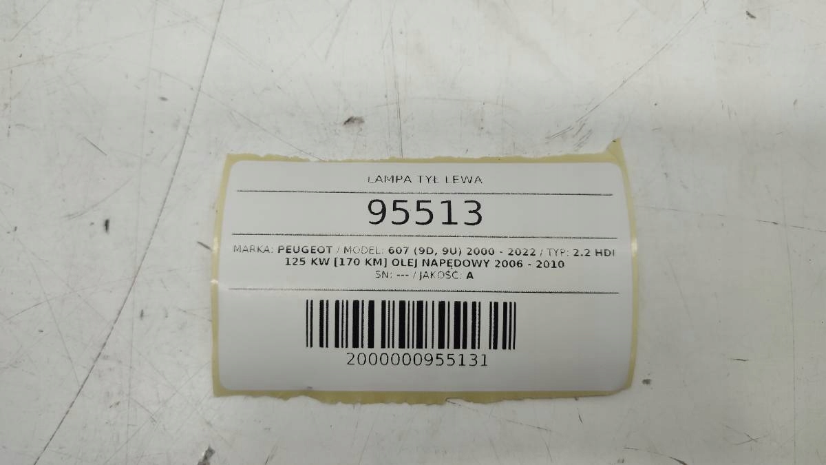 Лампа задняя левая peugeot 607 europa