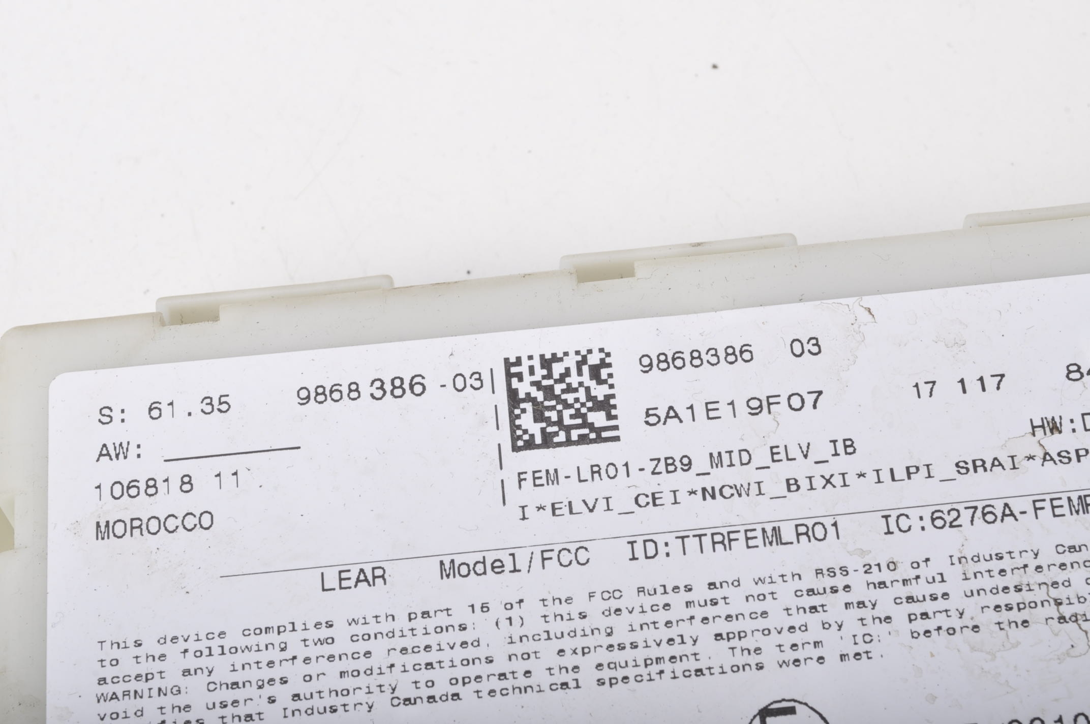 | Каталожный номер детали: | 9868386 |