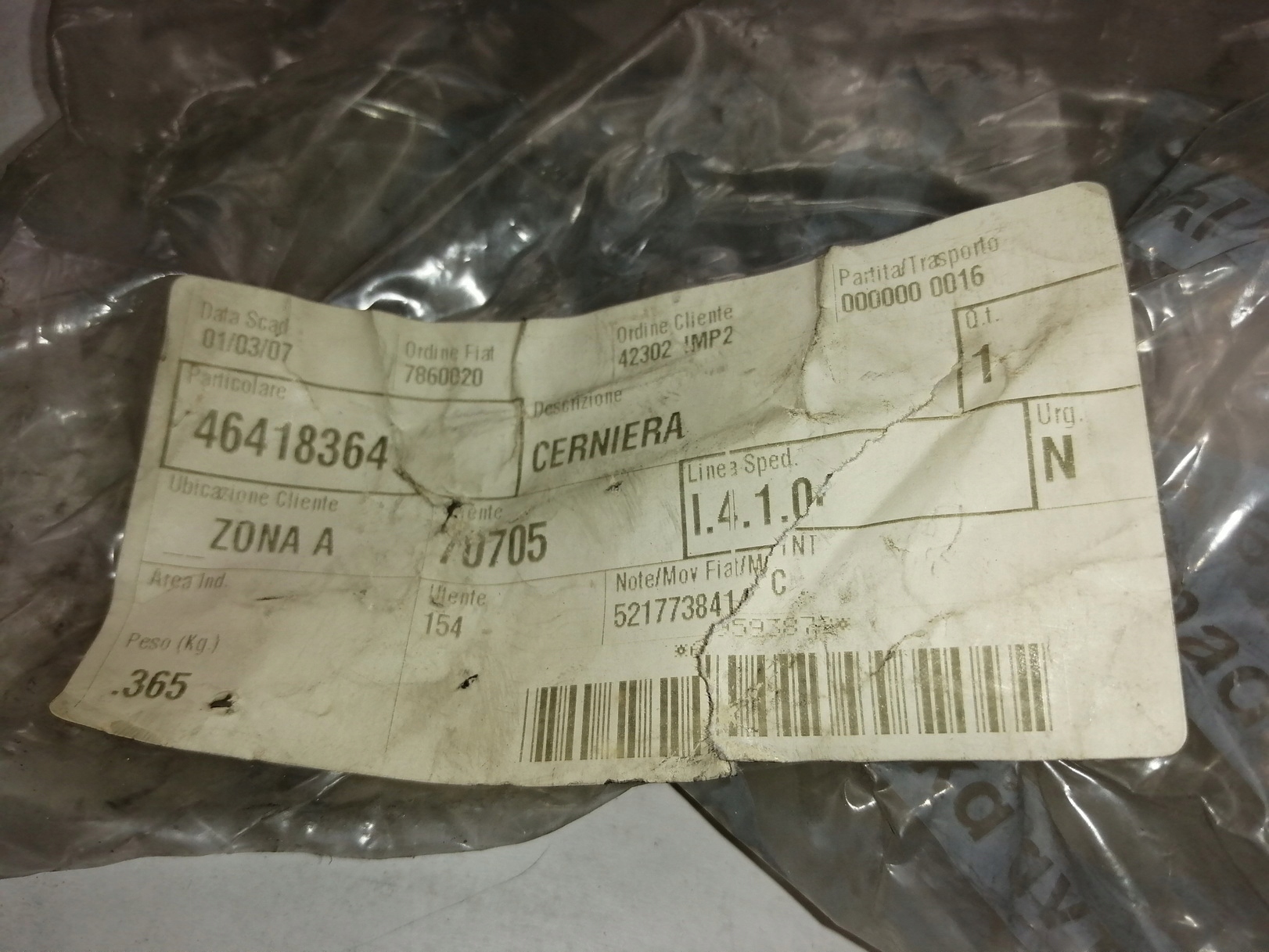 | Каталожный номер детали: | 46418364 |