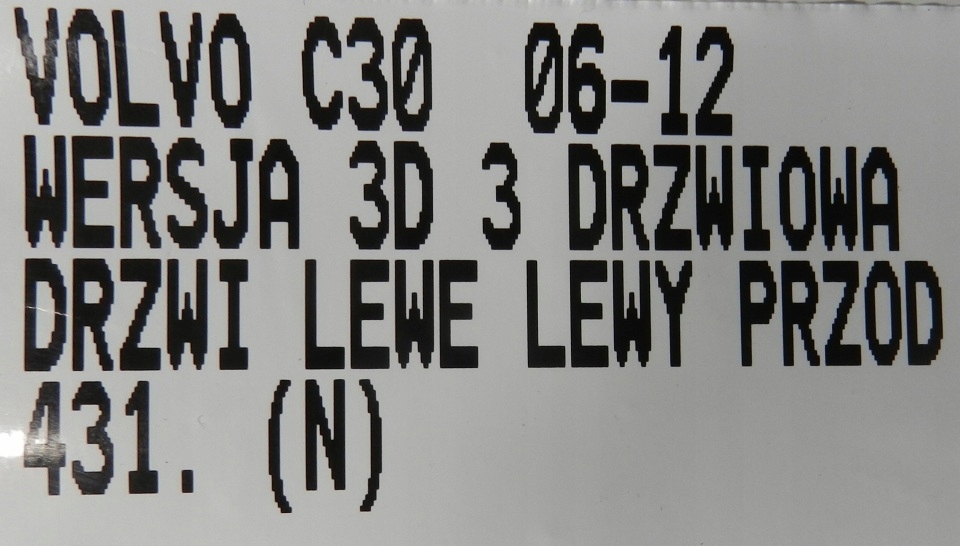 | Каталожный номер детали: | 431.DRZWI, LEWE, LEWY, PRZÓD, PRZEDNIE, VOLVO, C30, WERSJA, 3D |