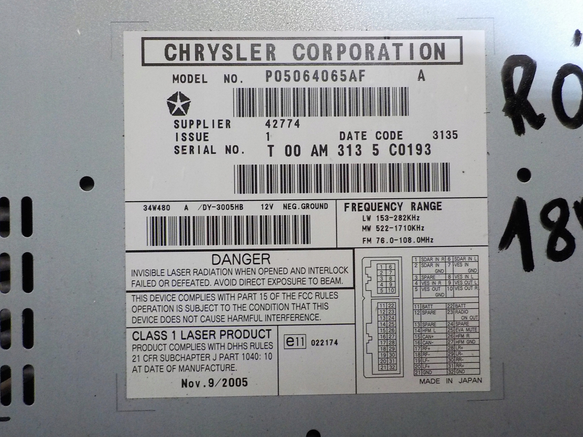 Каталожный номер детали: RADIO
