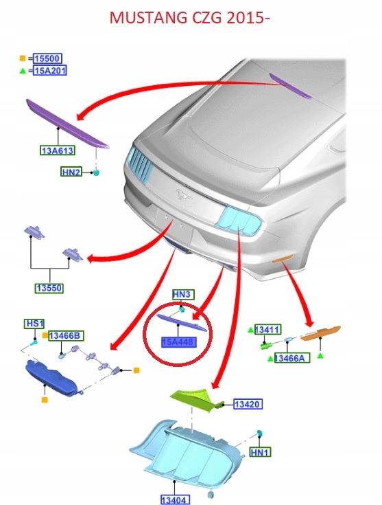 Отражатель левый бампера задняя mustang 2017- оригинальный номер 2163008