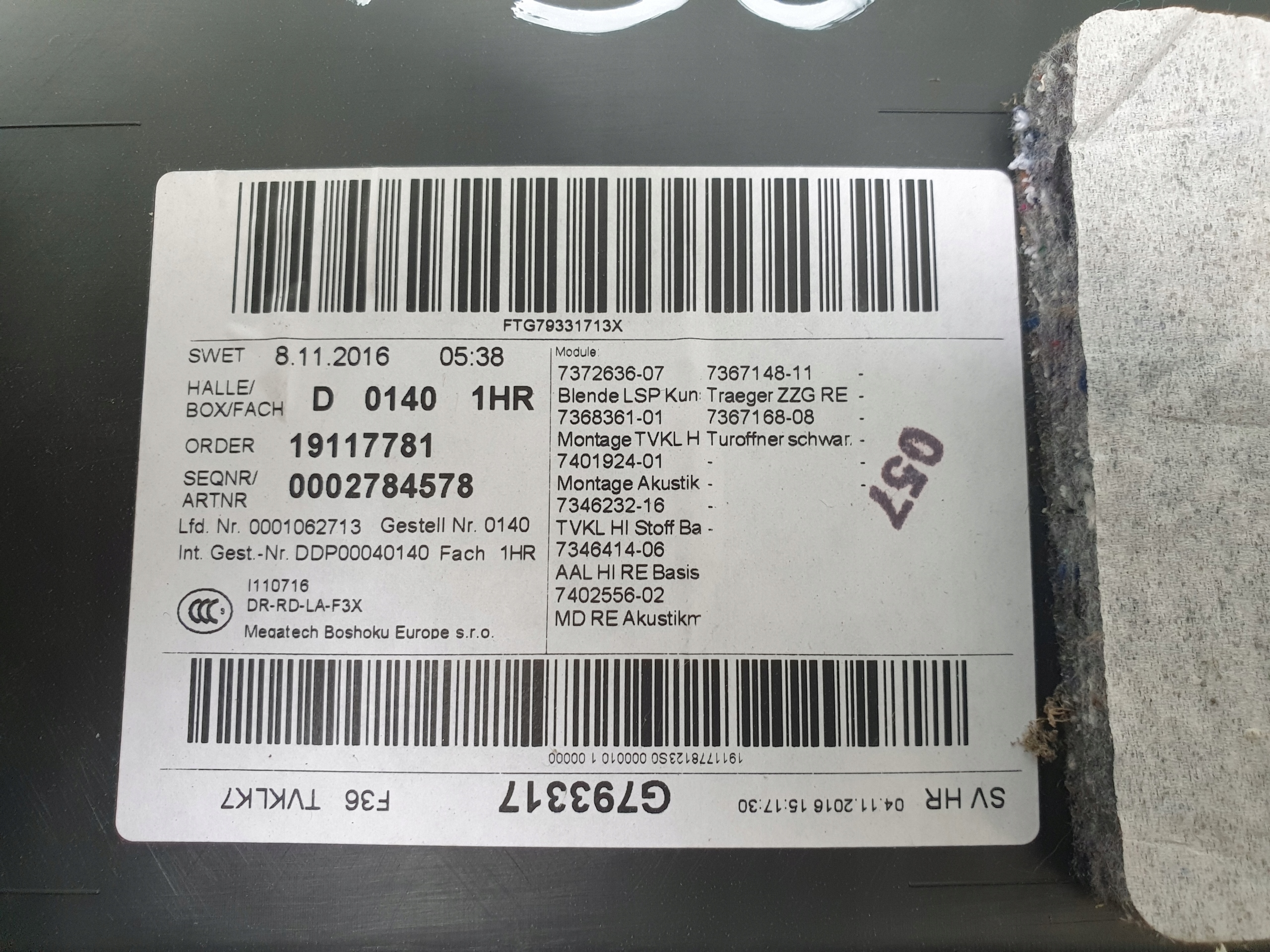 | Каталожный номер детали: | 7372636 |