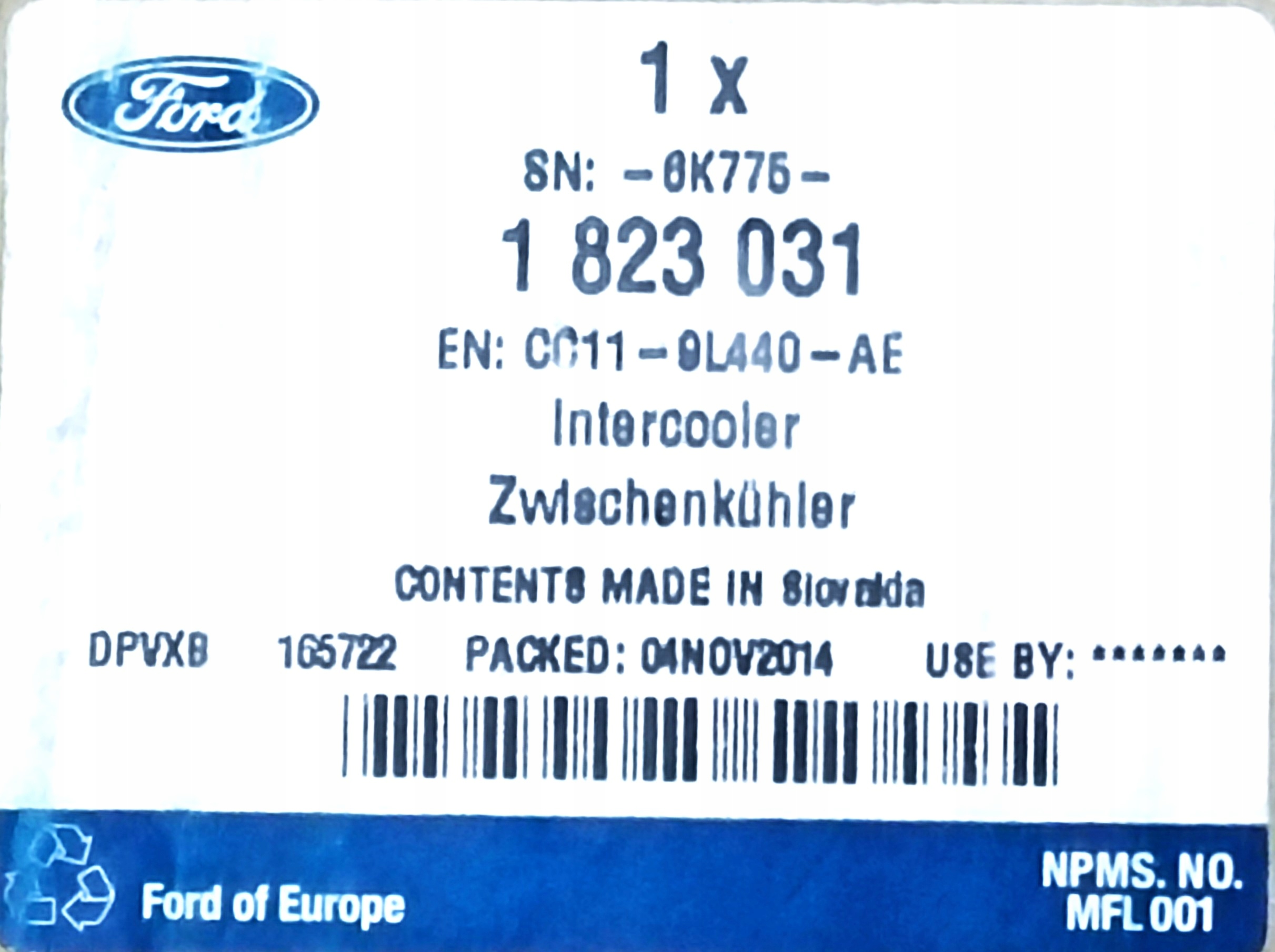 Интеркулер ford transit mk6 tourneo новый оригинальный номер