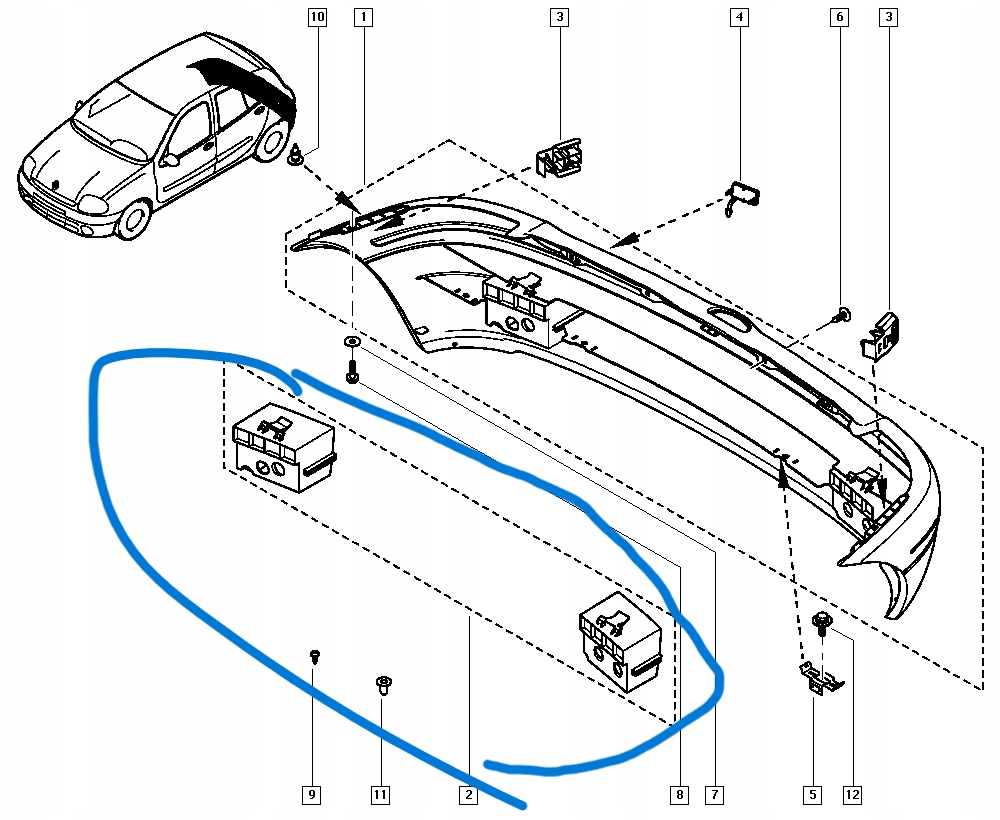 Направляющая бампера задняя clio ii 7701205650
