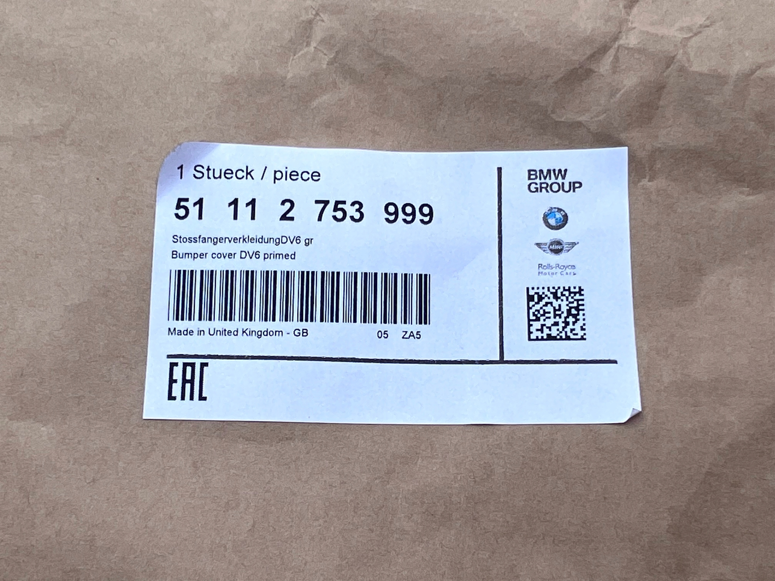 Каталожный номер детали: 51112753999, 2753999