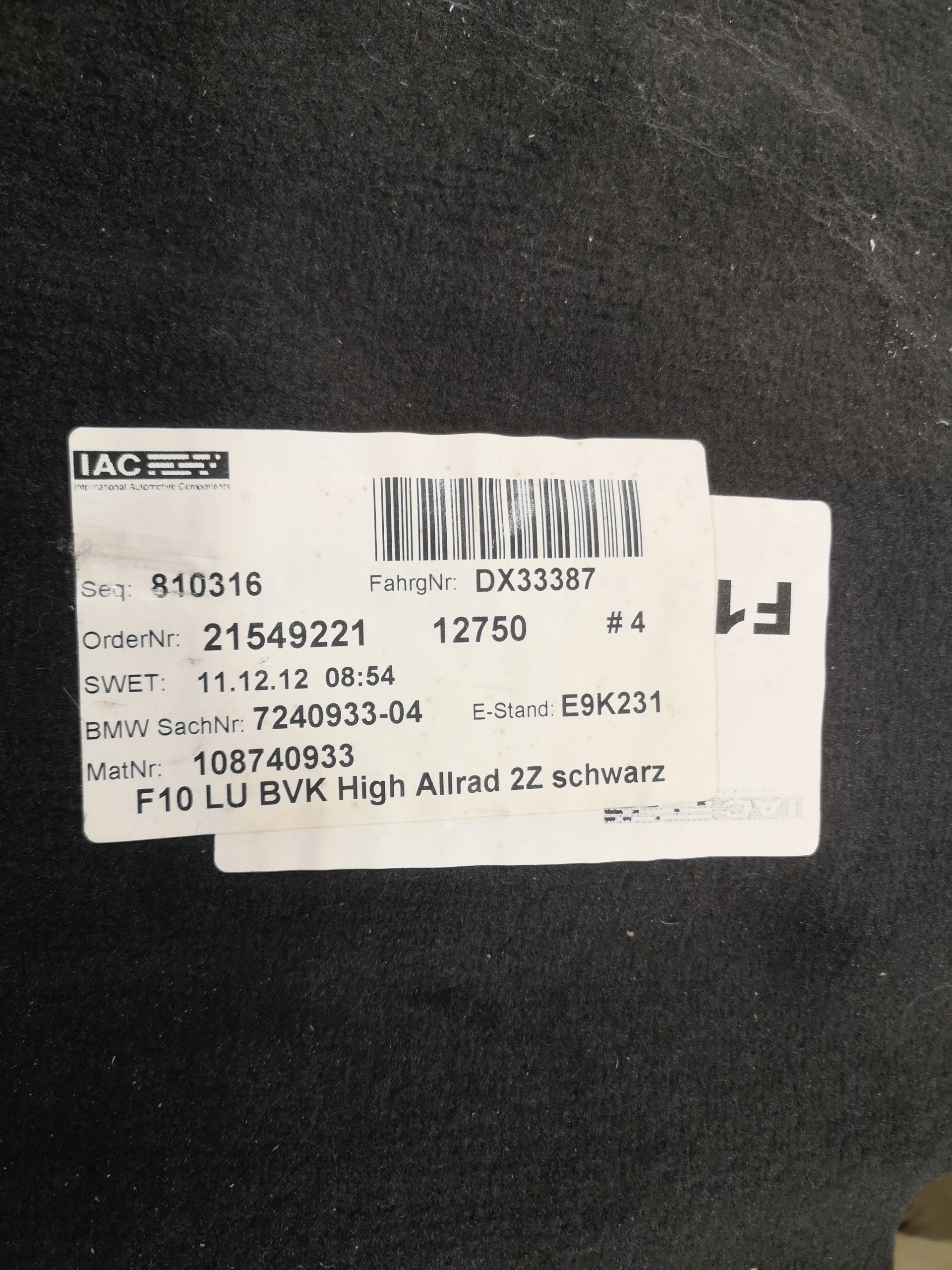 | Каталожный номер детали: | DYWAN WYKŁADZINA PRZÓD M-PAKIET BMW F10 F11 |