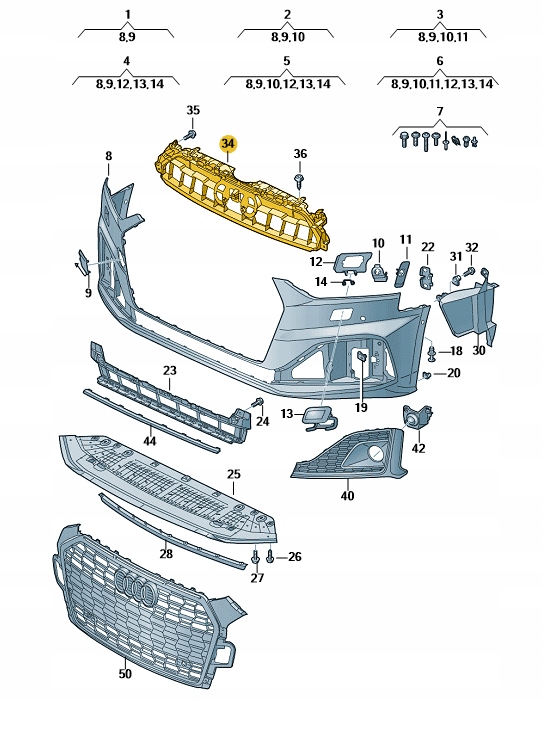 Element крепёжный решётка радиатора перед audi a5 b9 aso оригинал od aso