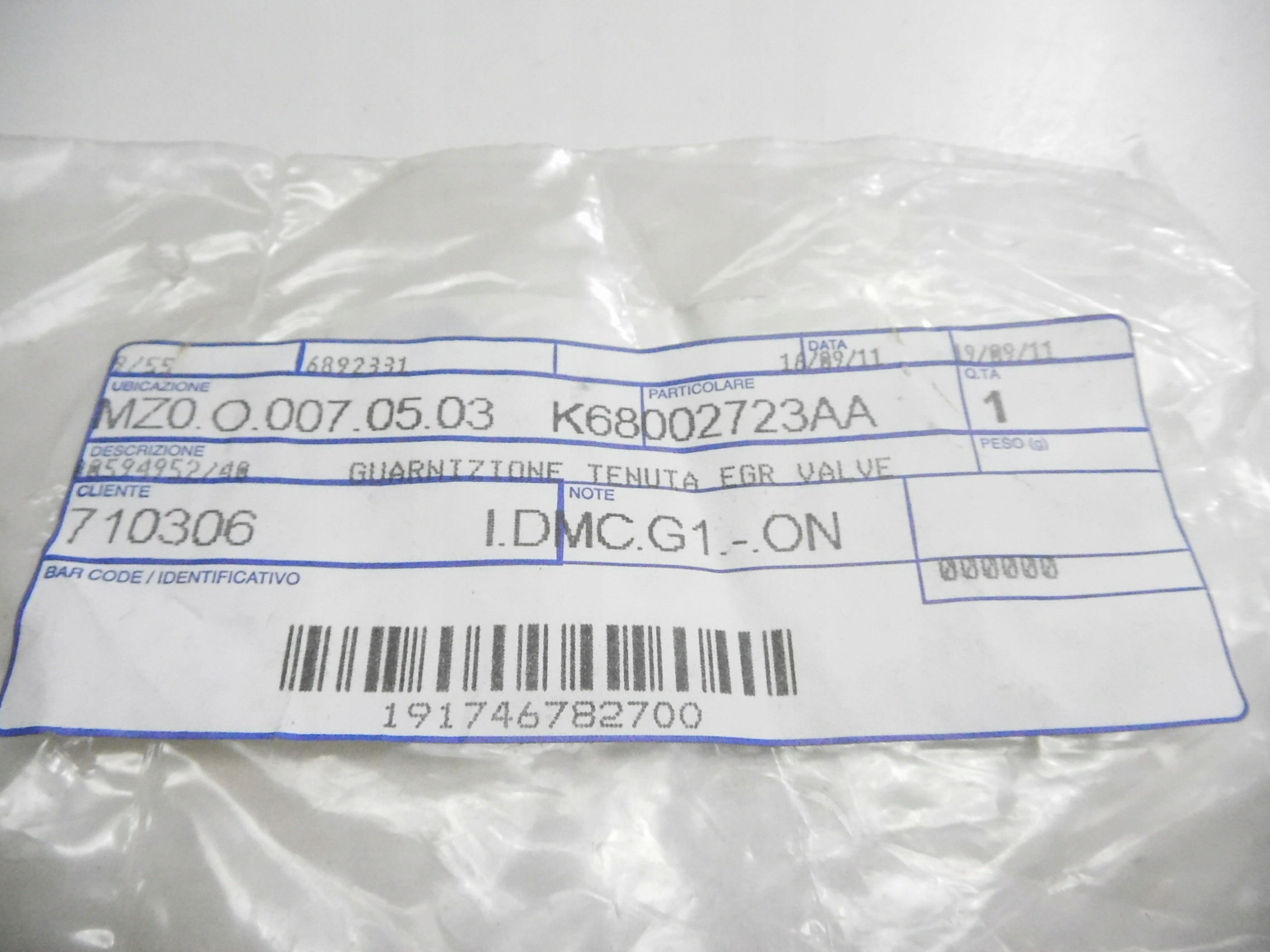 | Каталожный номер детали: | uszczelka, K68002723AA |