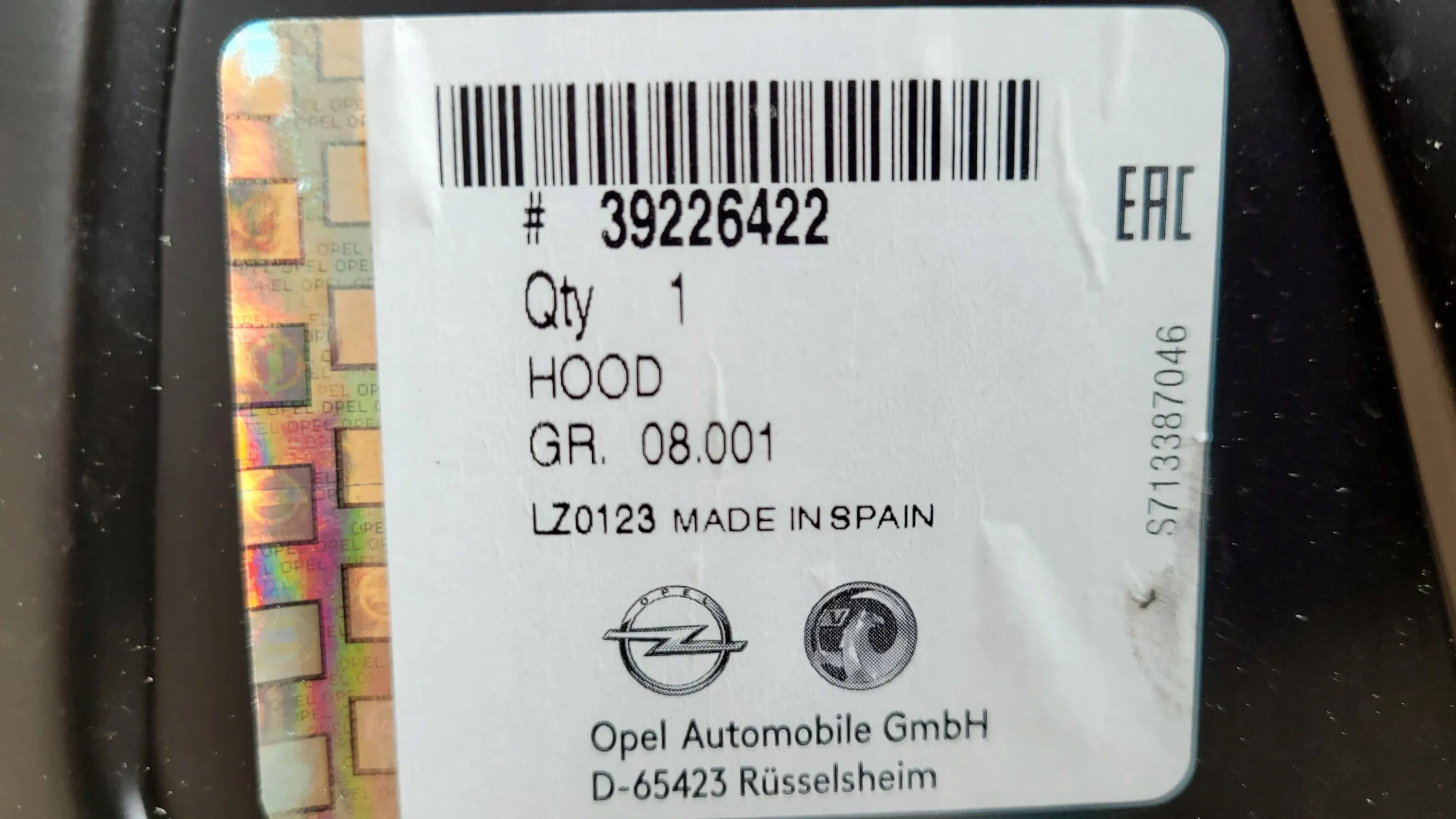 Opel crossland x lift капот крышка oryg fv