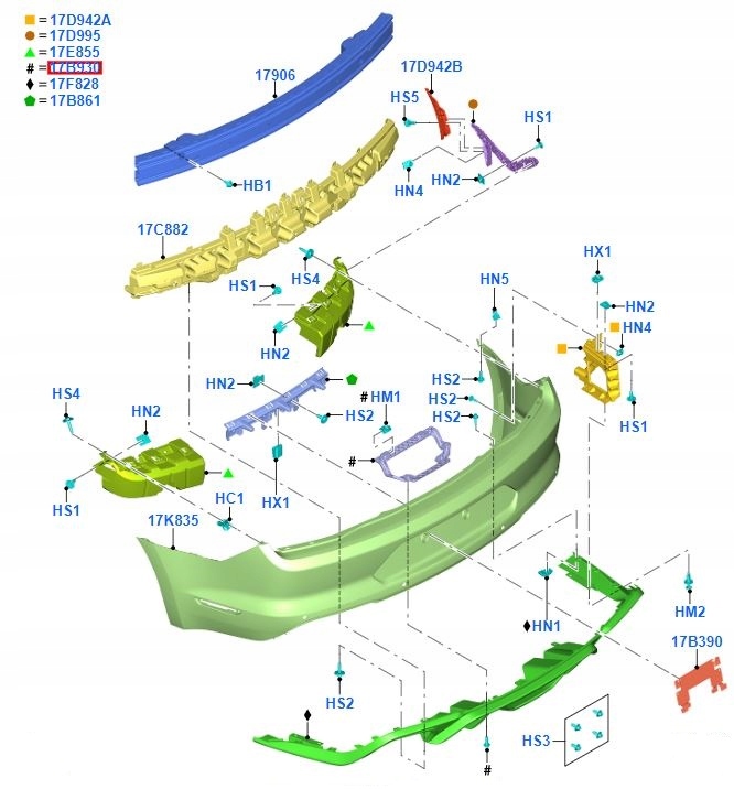 Кронштейн средний бампера задняя mustang 17-