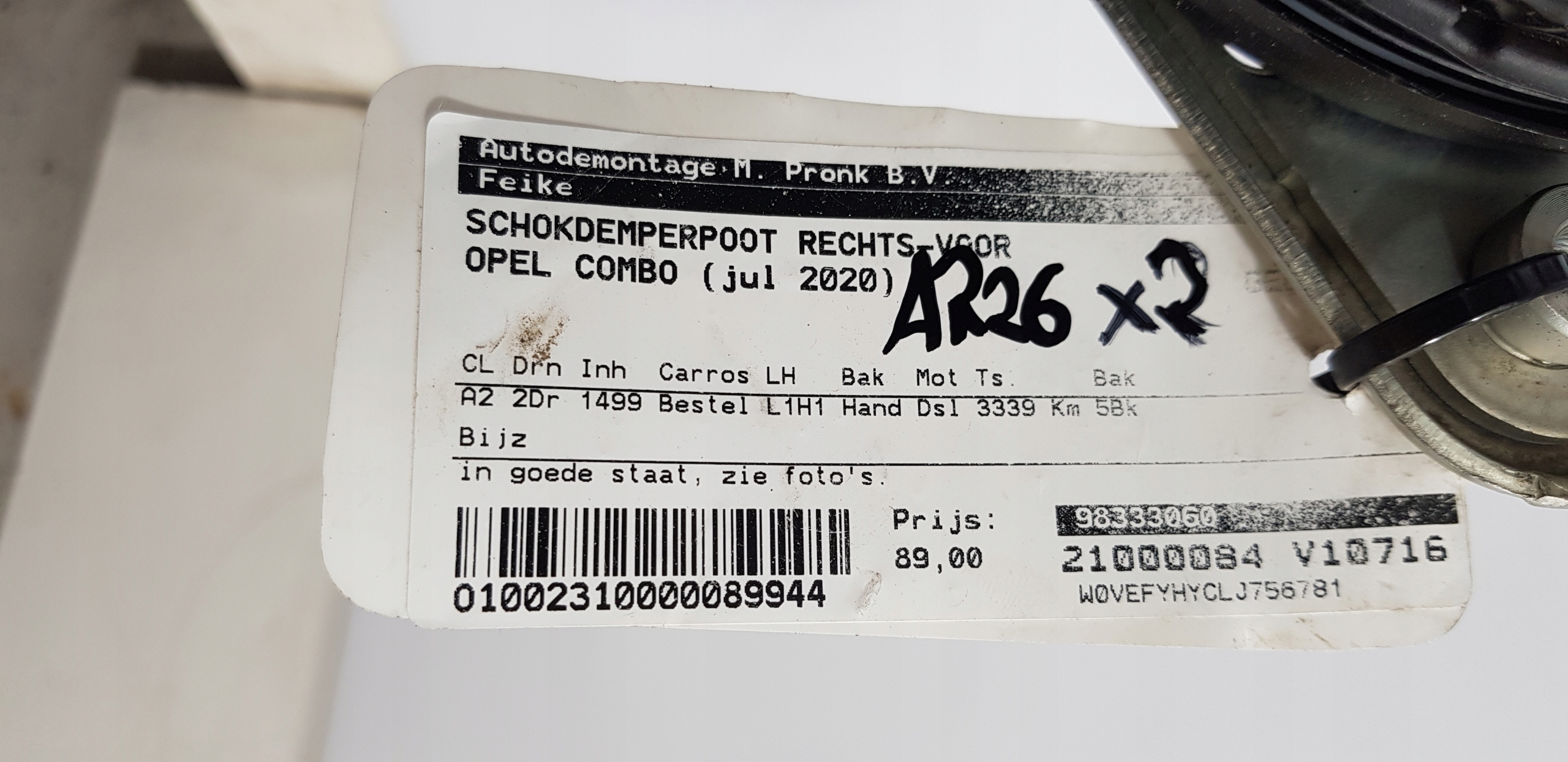 Каталожный номер детали: Opel Combo E 18r- Amortyzator Prawy Lewy 98333060 #AR26