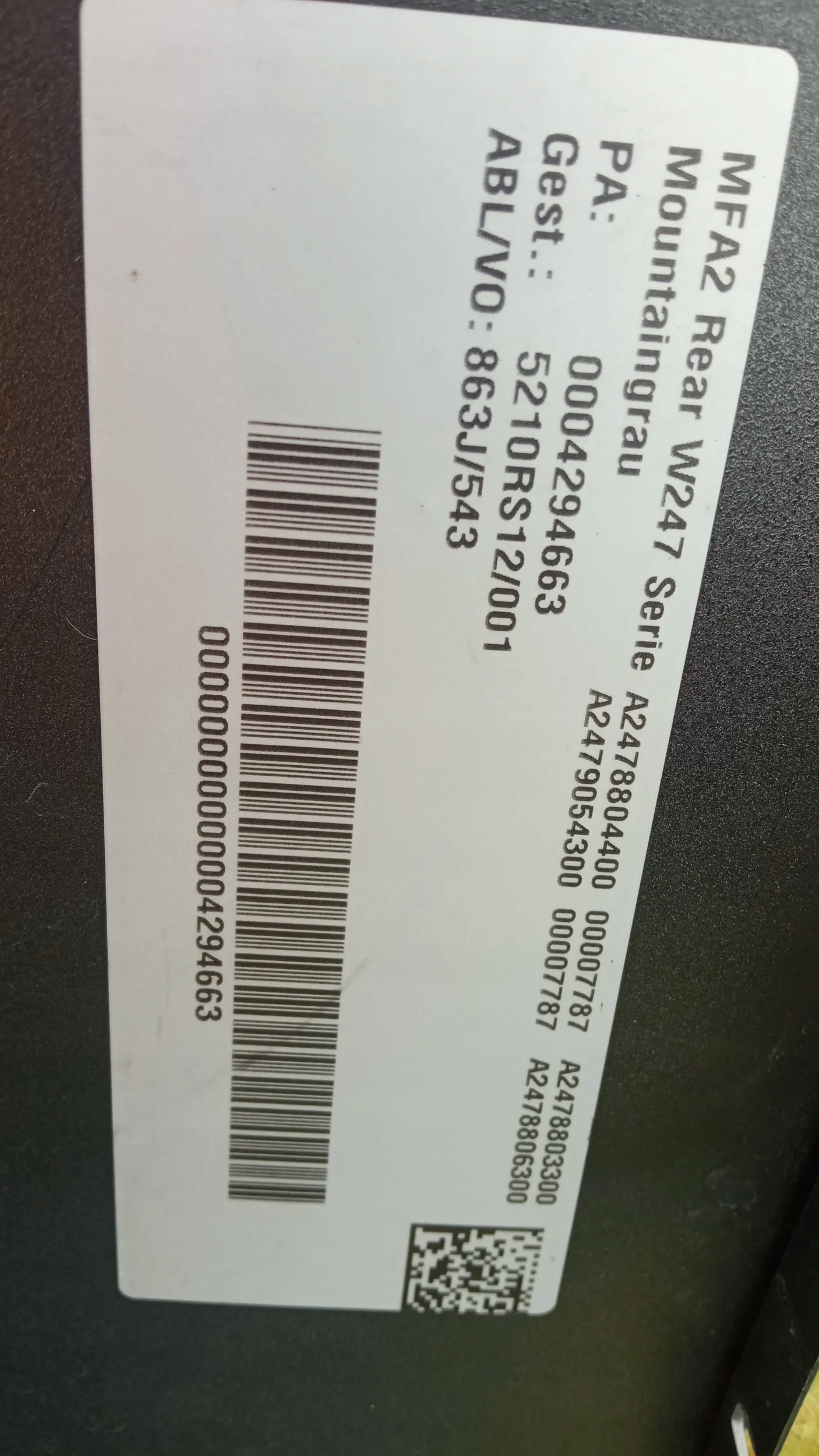 Оригинальный каталожный номер: A2478851001