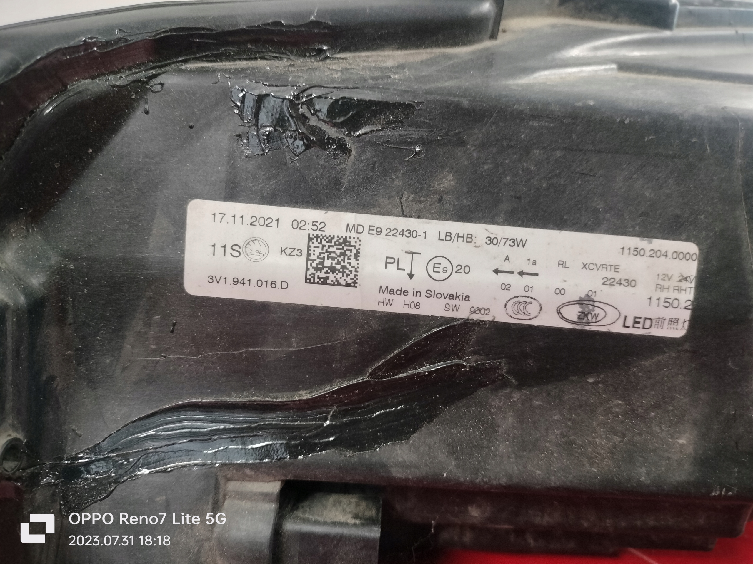 Skoda superb фара led правая лампа 3v1941016d
