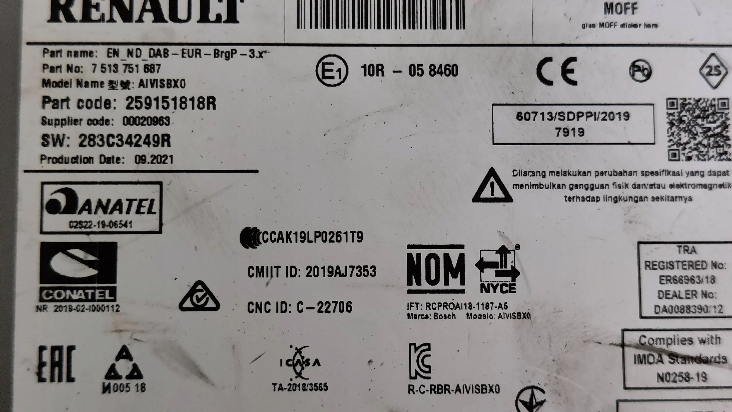 | Каталожный номер детали: | 259151818R, 280342895R, pwexpert2017 |