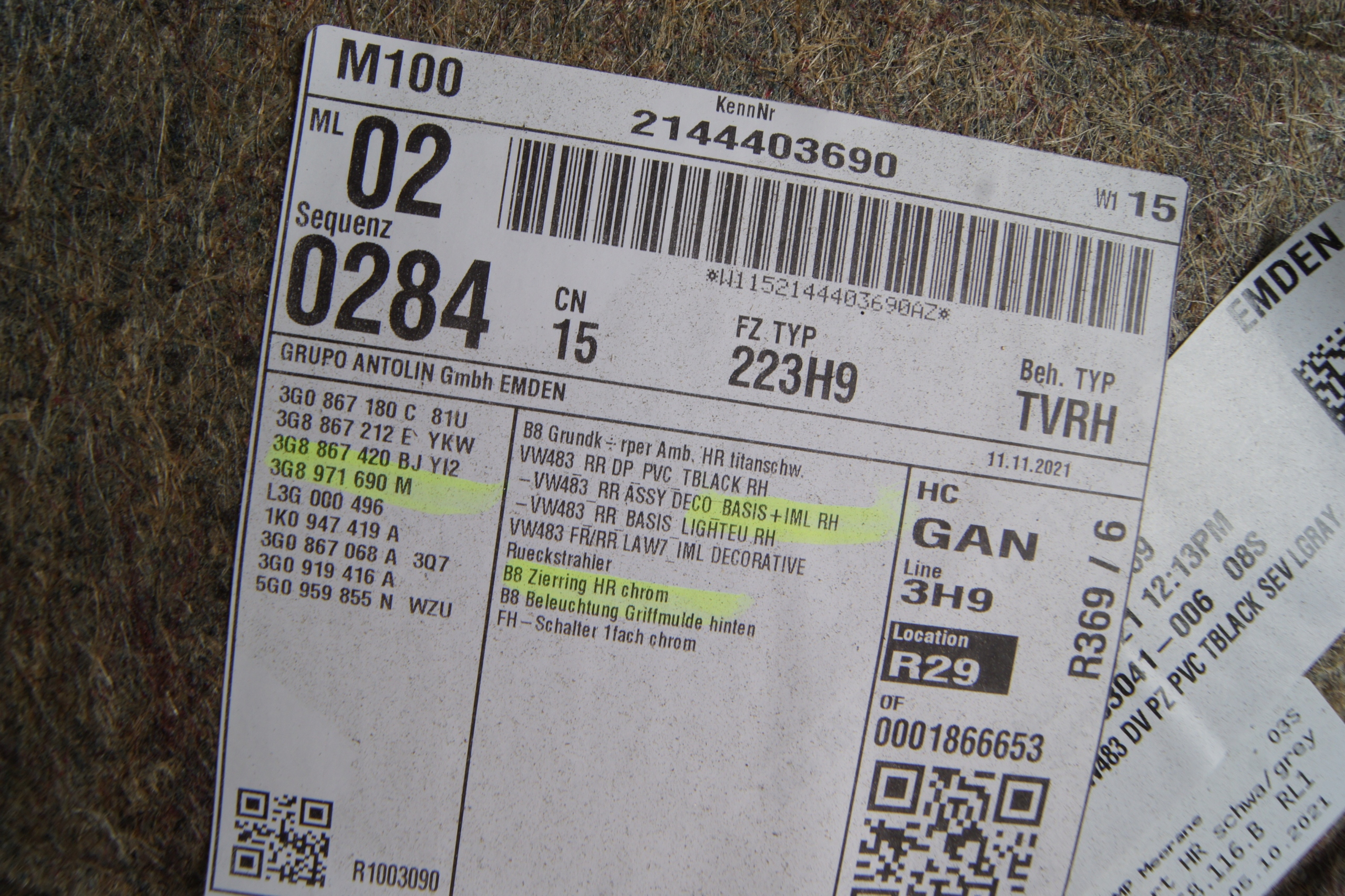 | Оригинальный каталожный номер: | 3G8867212E |