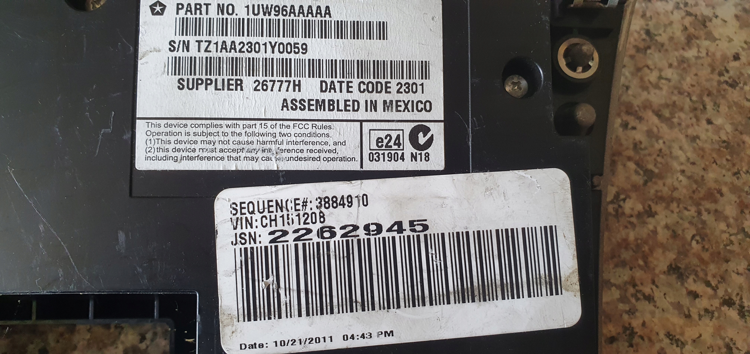 | Каталожный номер детали: | 1UW96AAAAA |