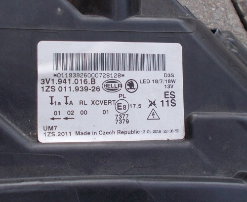 Лампа правая ксенон led skoda superb iii 3v1941016b