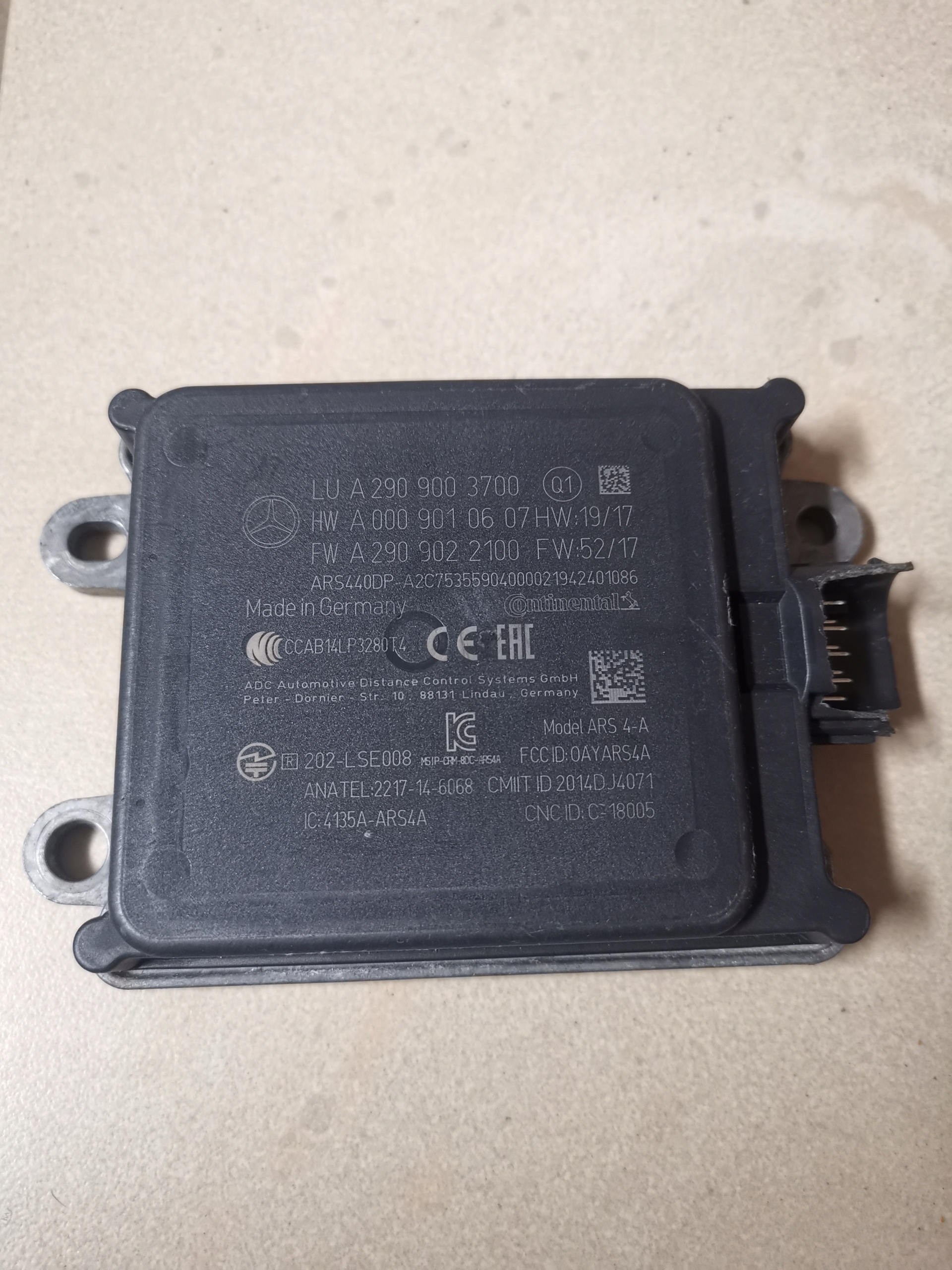 Каталожный номер детали: RADAR ACC DISCTRONIC MERCEDES W118 W167 W177 W205 W213 W217 W222 W238 W243 W247 W253 W257 W290 W293 A2909003700