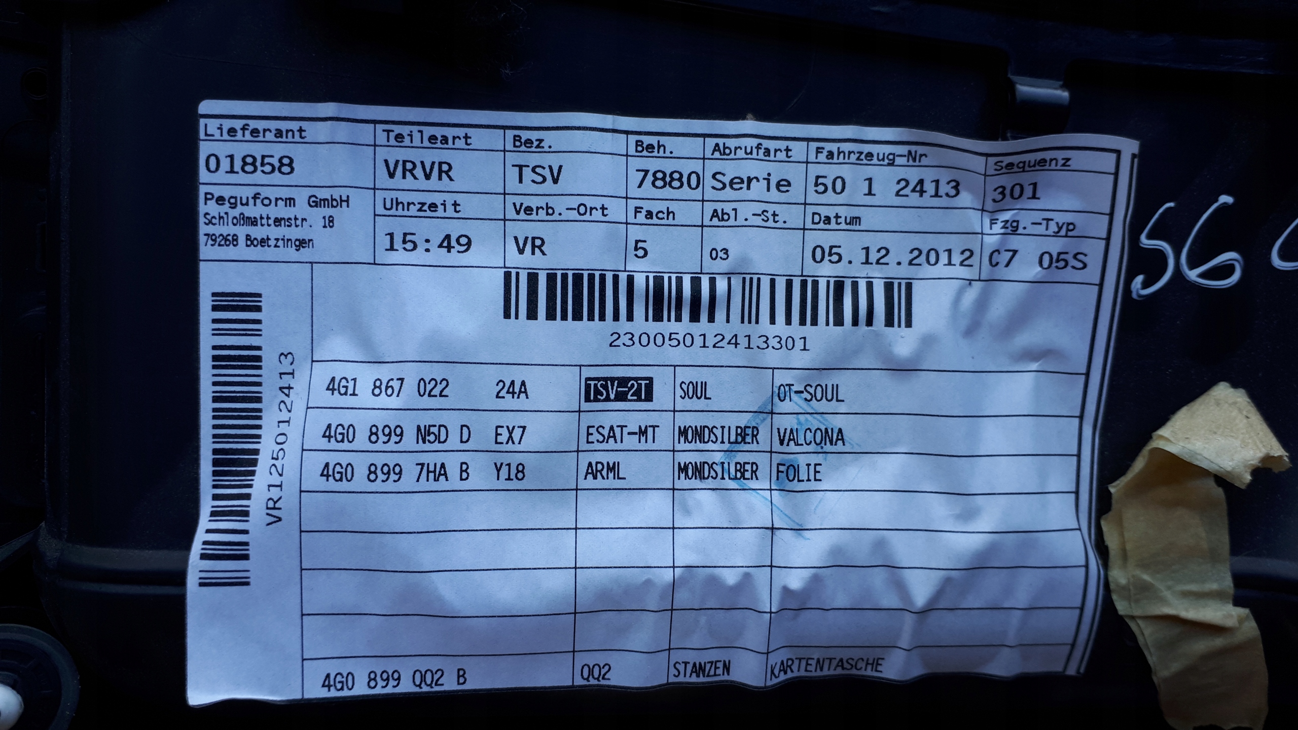 S6 c7 4g a6 обшивка дверь правый перед кожа eu
