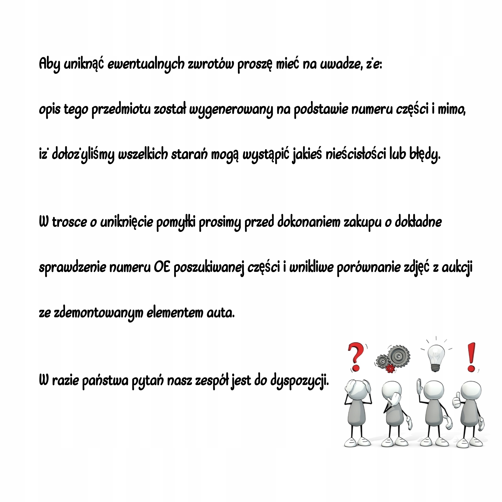 - покупатель не проверил совместимость или партномер запчасти при оформлении заказа, и поэтому она не подошла;