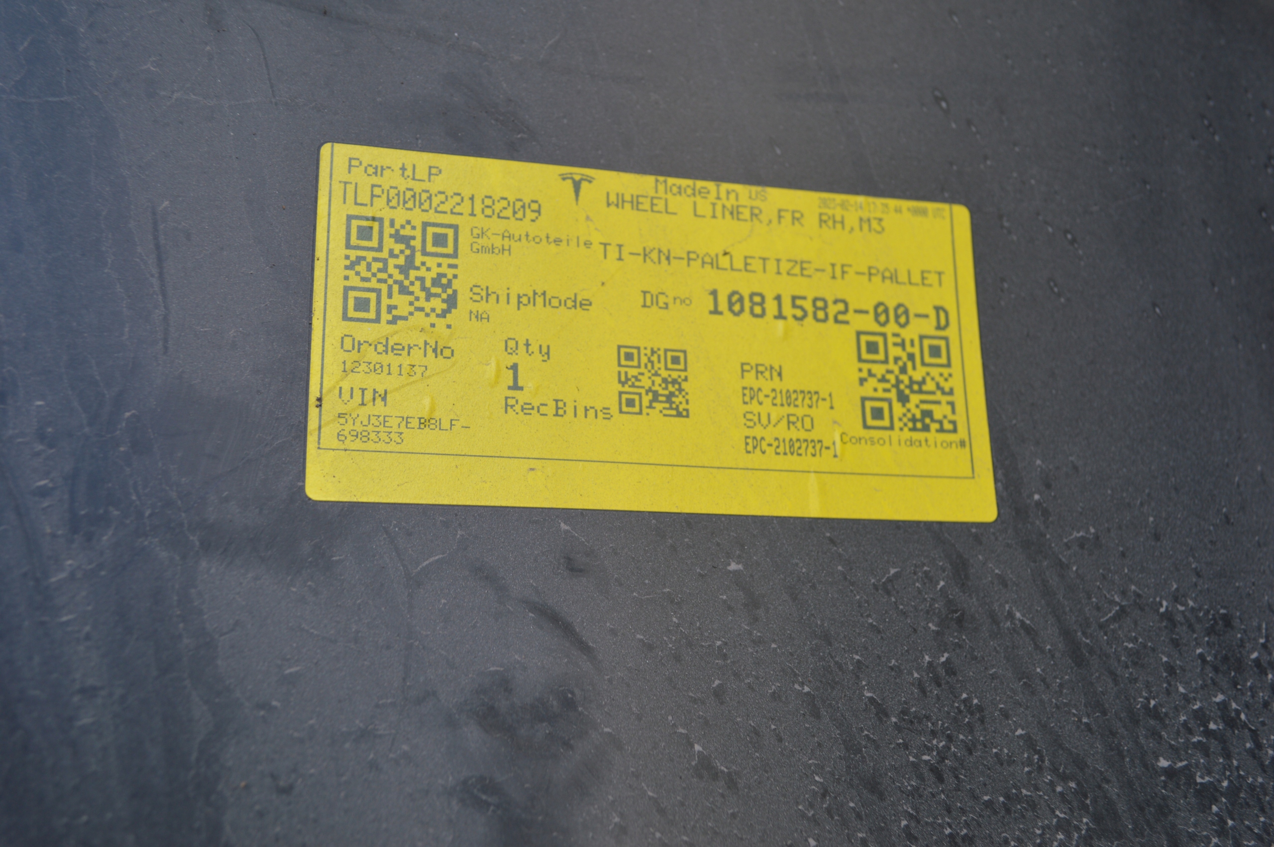 Есть ли гарантия на Подкрылок передние правое tesla 3?