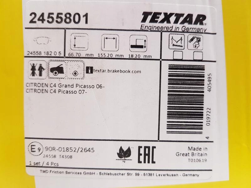 Как проверить совместимость Textar тормозные колодки тормозные перед 2455801 с моим авто?