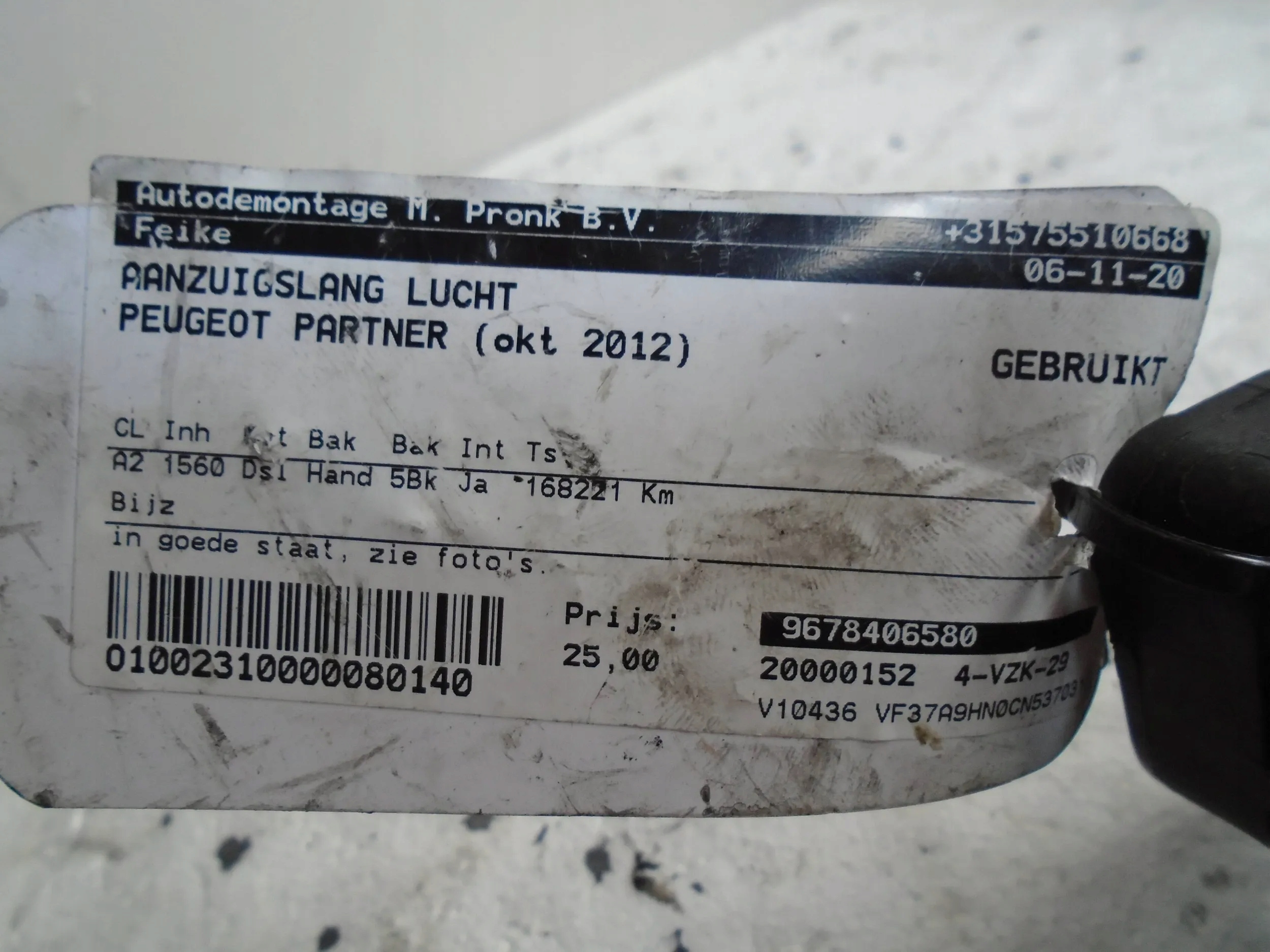 Труба шланг воздуха 9678406580 peugeot partner