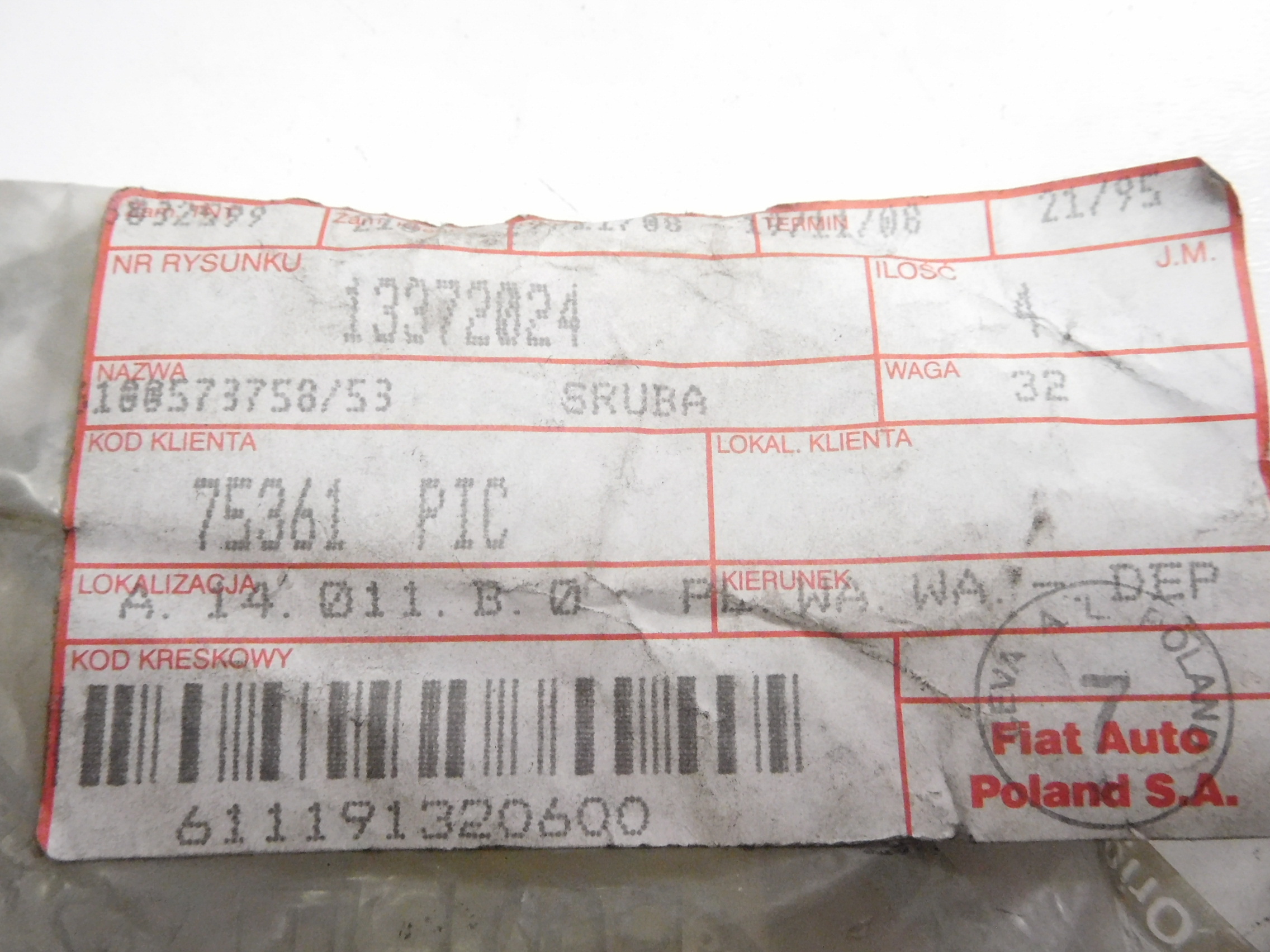Болт рычага перед fiat palio оригинальный номер 13372024