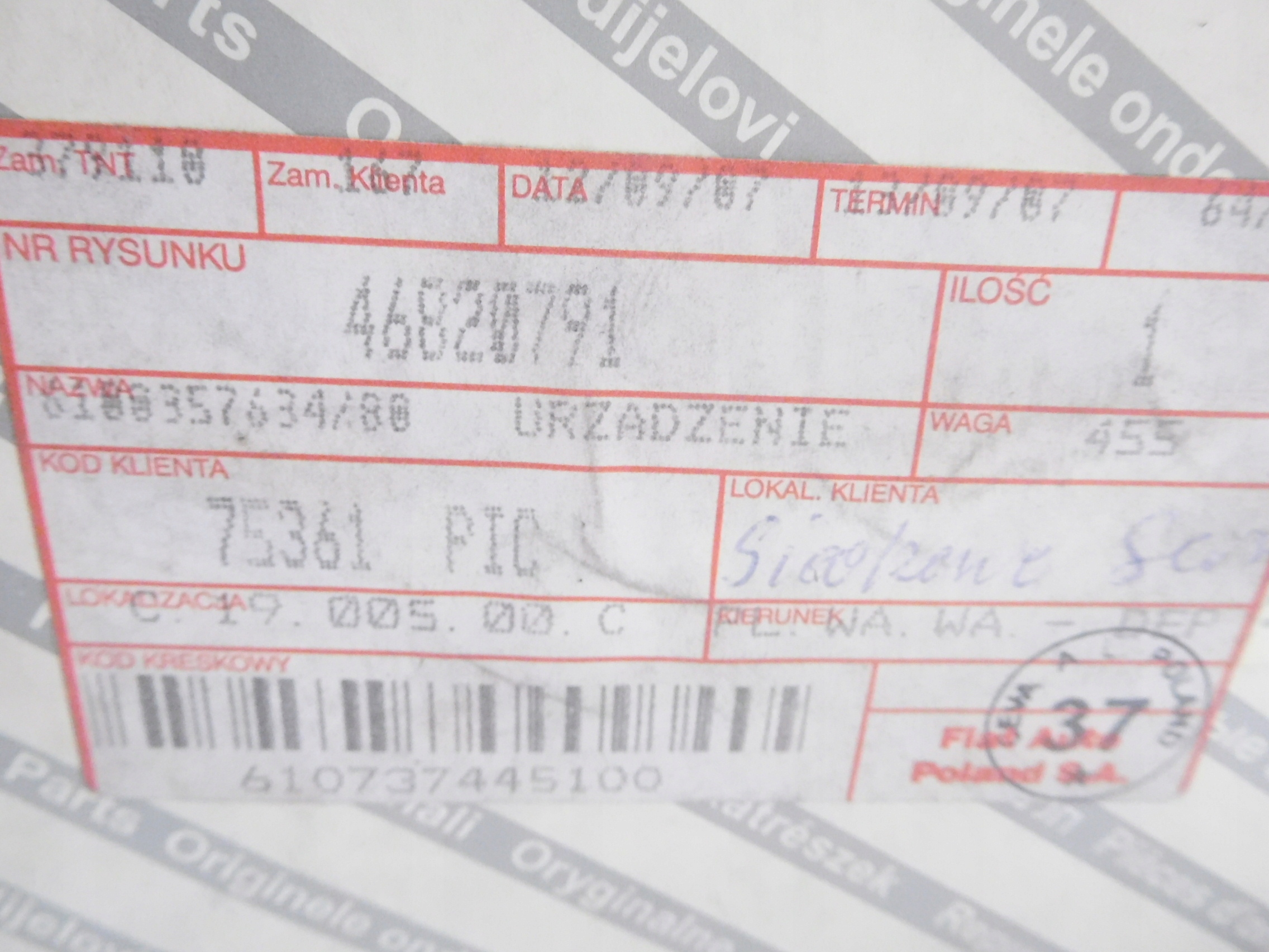 | Производитель запчасти: | fiat оригинальный номер |