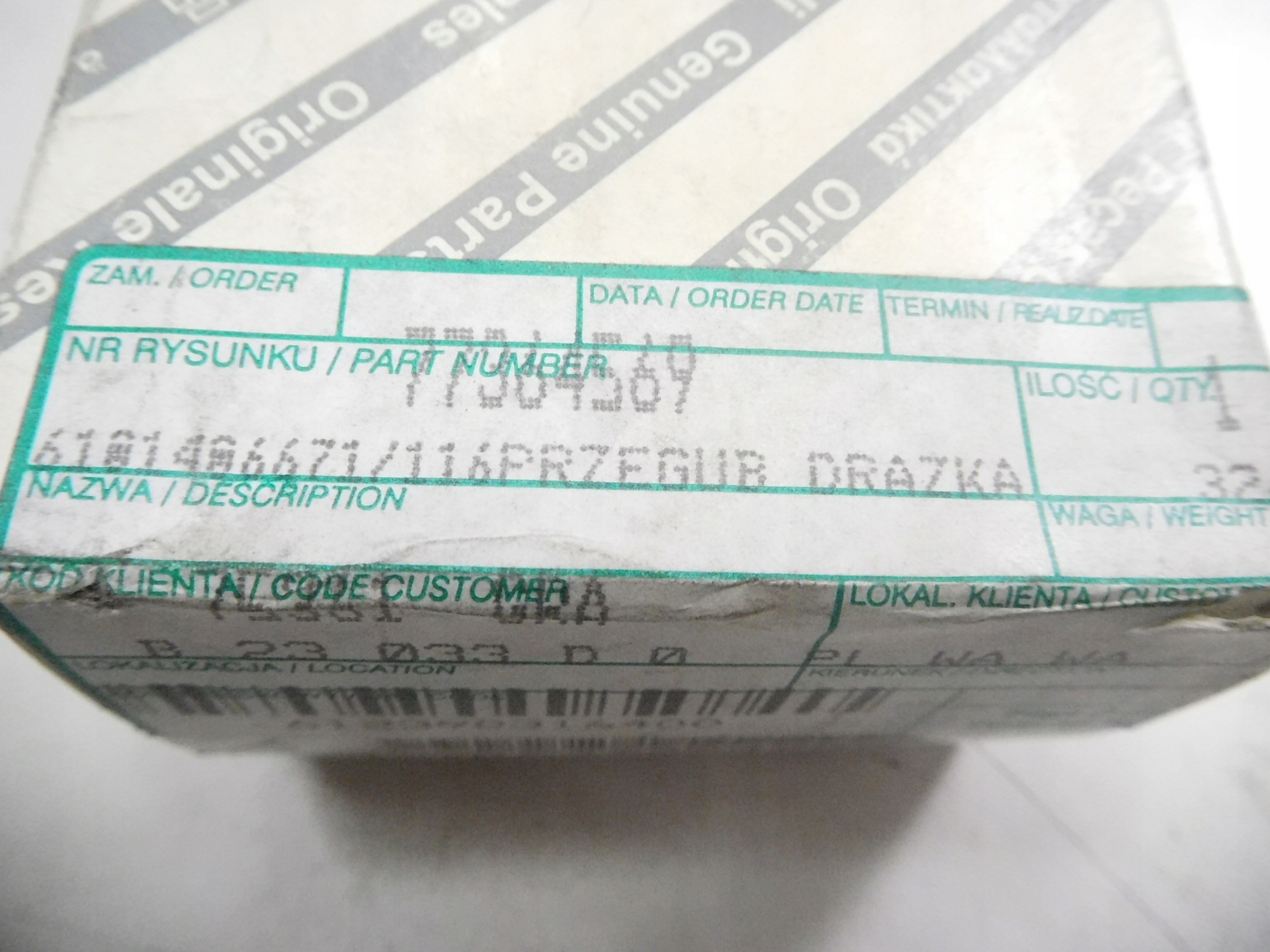 Качество запчасти в соответствии с gvo: o - оригинал с logo производитель транспортного средства оригинальный номер
