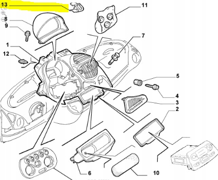 Клипса кронштейн, приборная панель приборная fiat multipla оригинальный номер 82485549