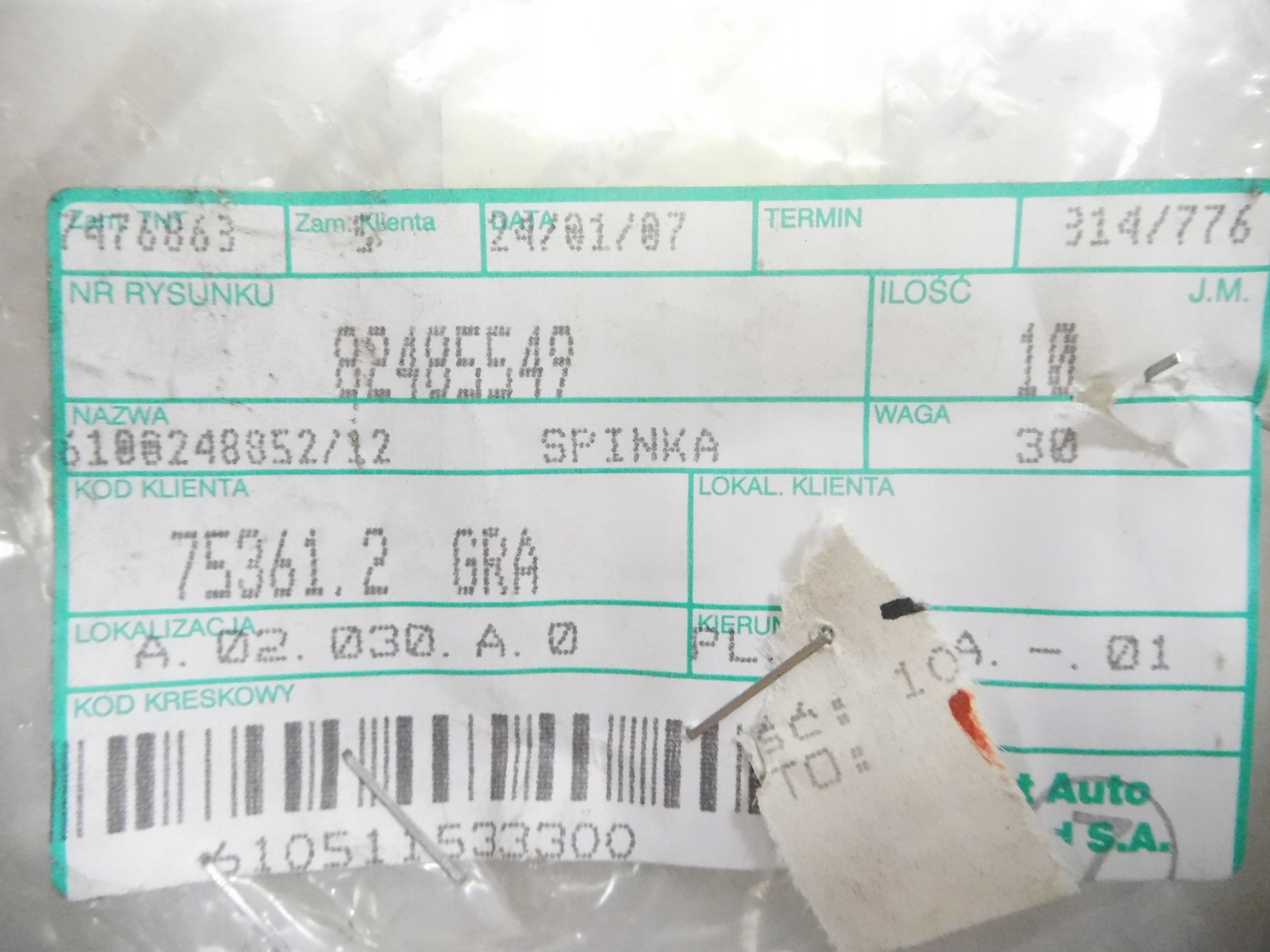 Есть ли гарантия на Клипса кронштейн, приборная панель приборная fiat multipla оригинальный номер 82485549?