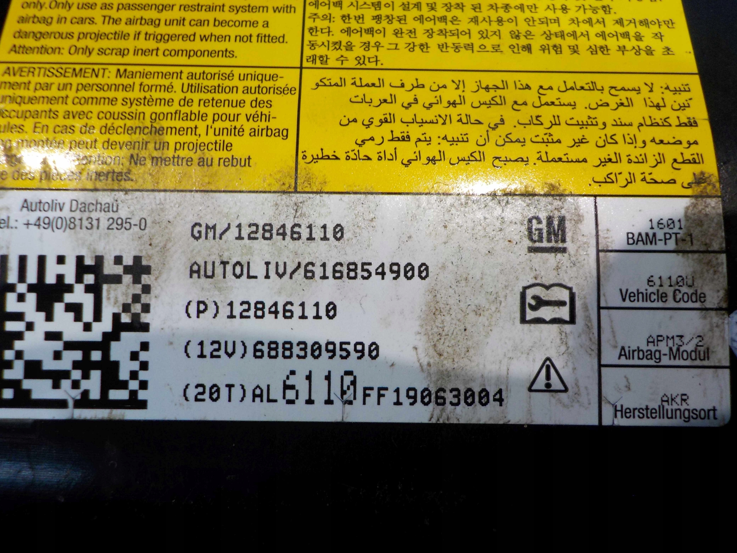 Chevrolet cruze i 09r подушка безопасности подушка пассажира 12846110