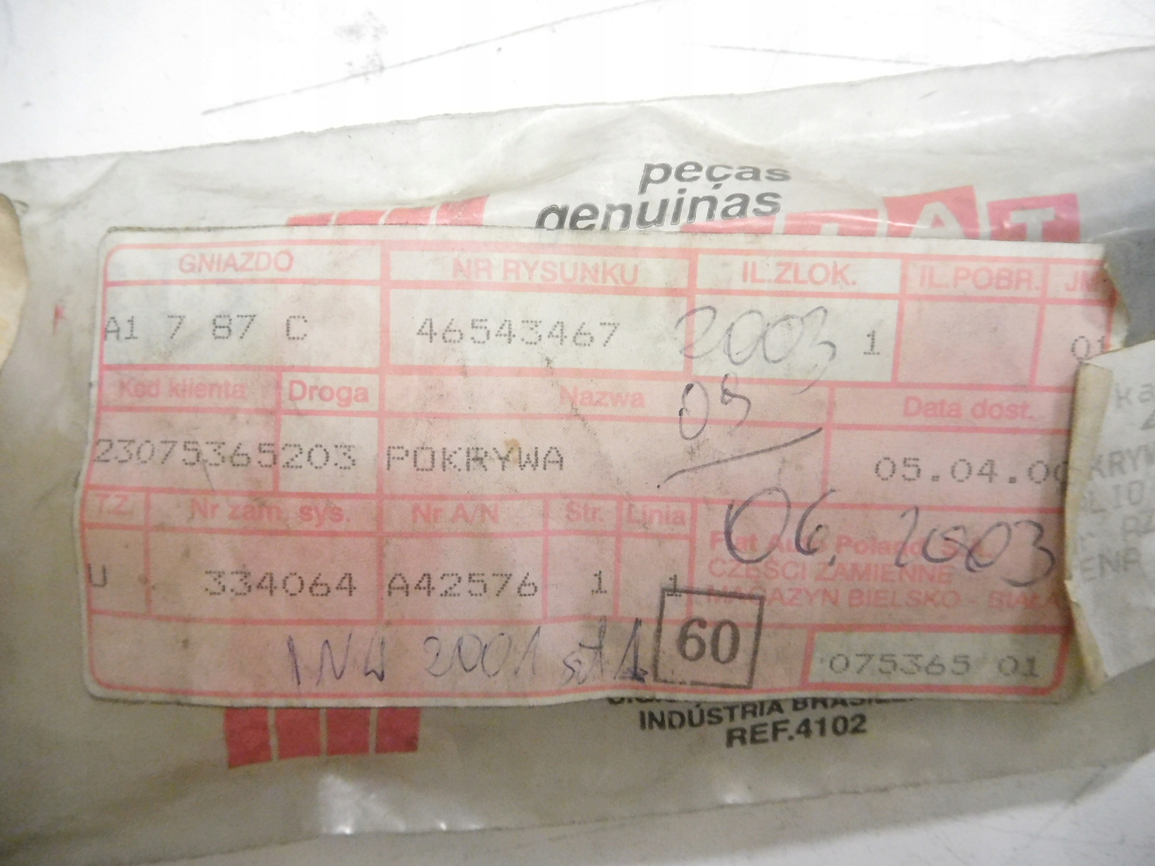 | Каталожный номер детали: | 46543467 |