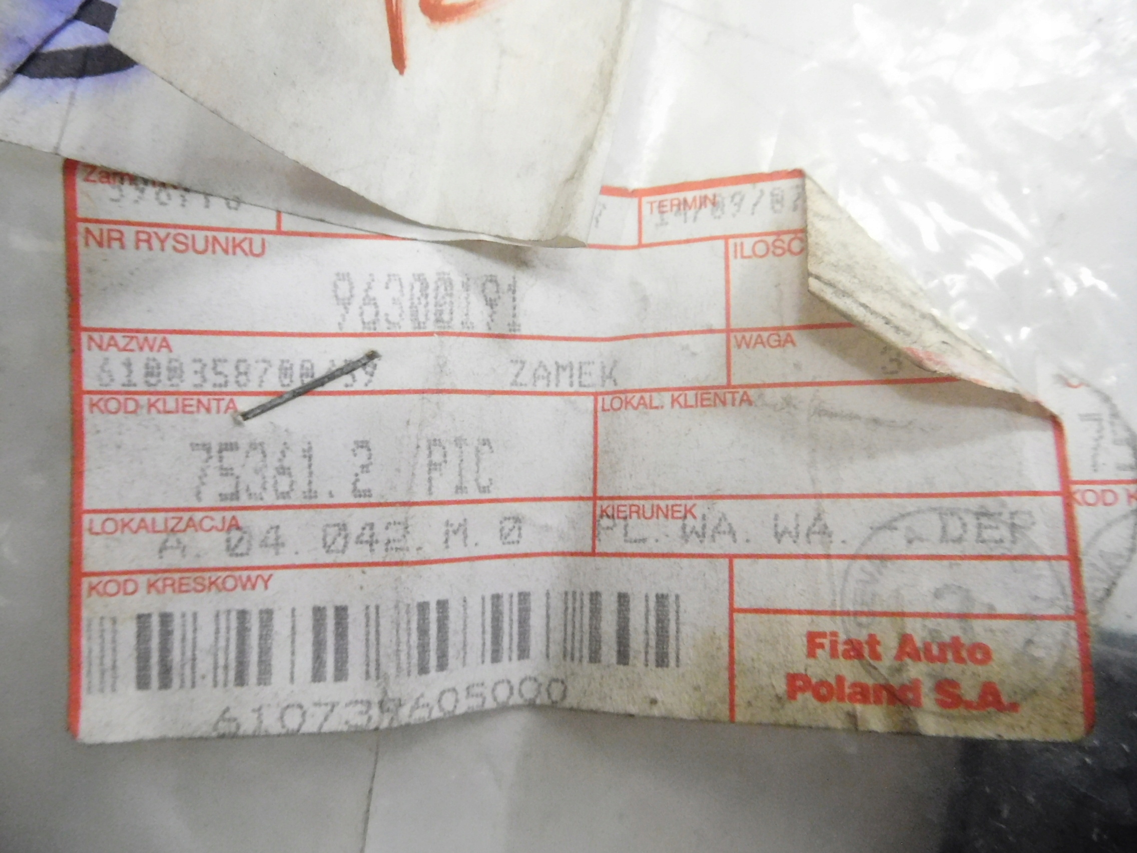 | Каталожный номер детали: | 96300191 |