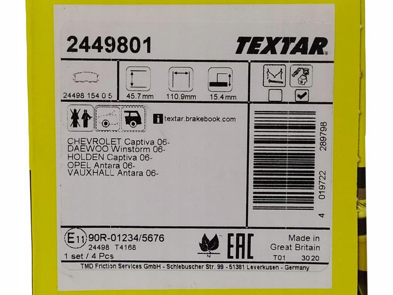| Производитель запчасти: | textar |
