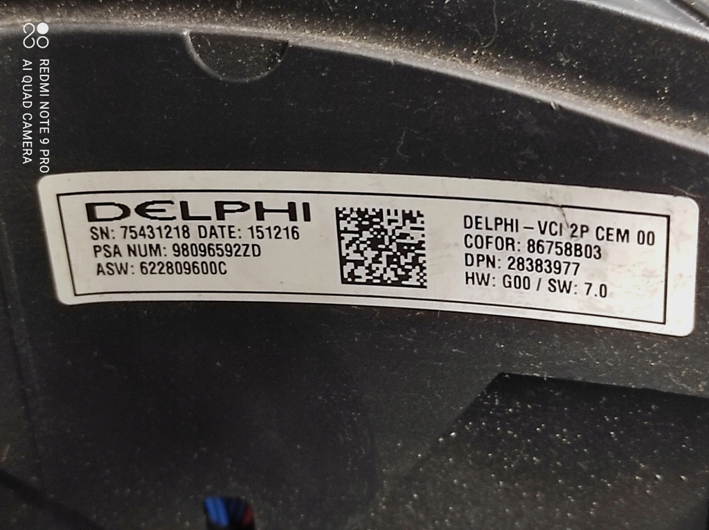 | Каталожный номер детали: | 98096592ZD |