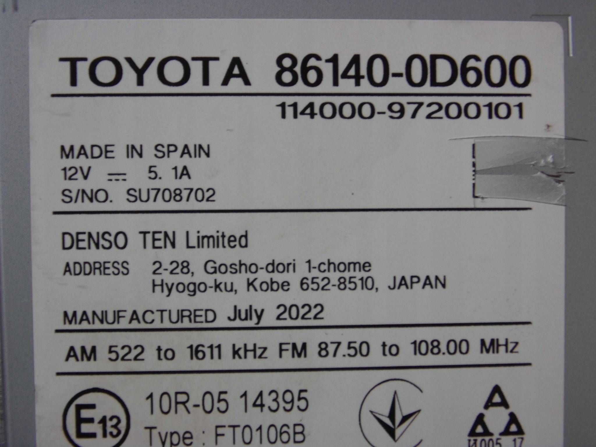 Toyota yaris iv xp210 2020+ радио дисплей экран 861400d600