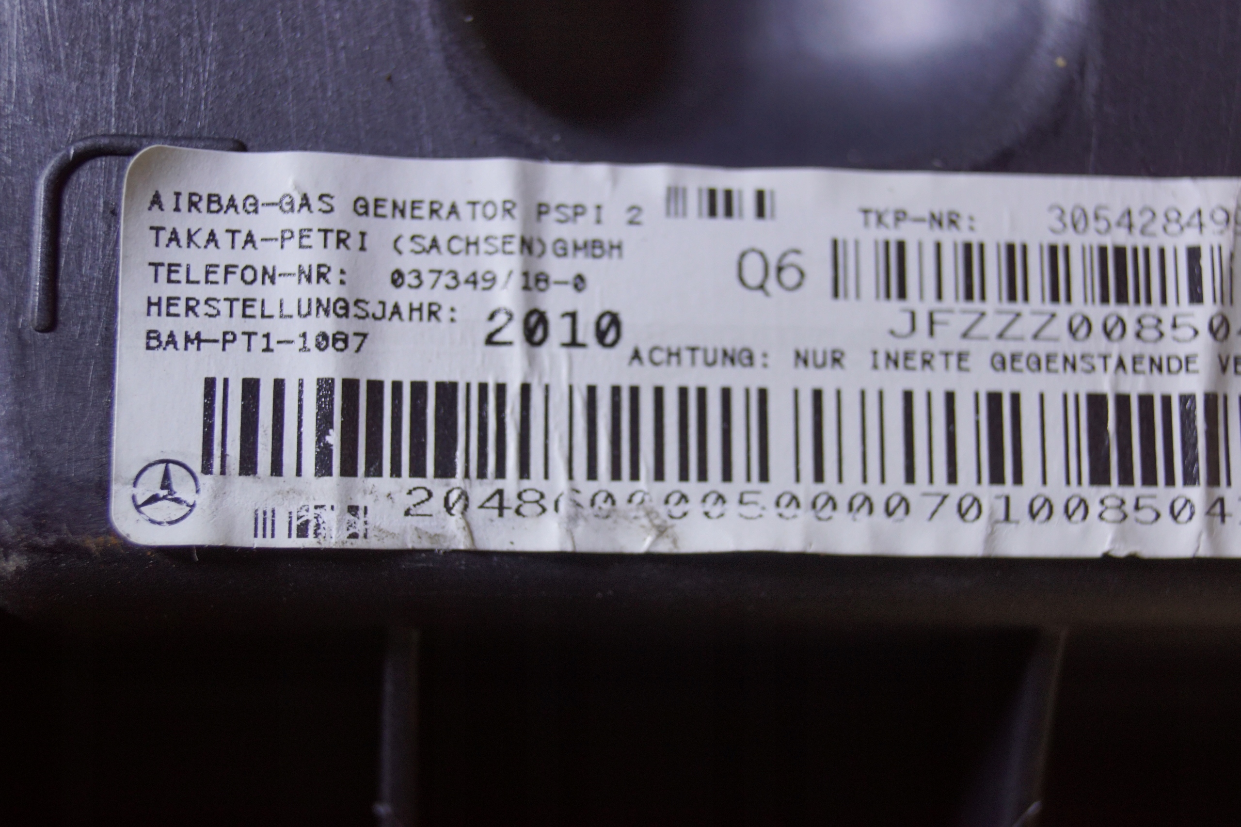 Подушка подушка безопасности пассажира mercedes w204 2048600005