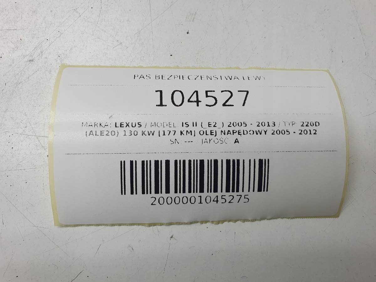 Pas безопасности задняя средний lexus is 220 ii eu