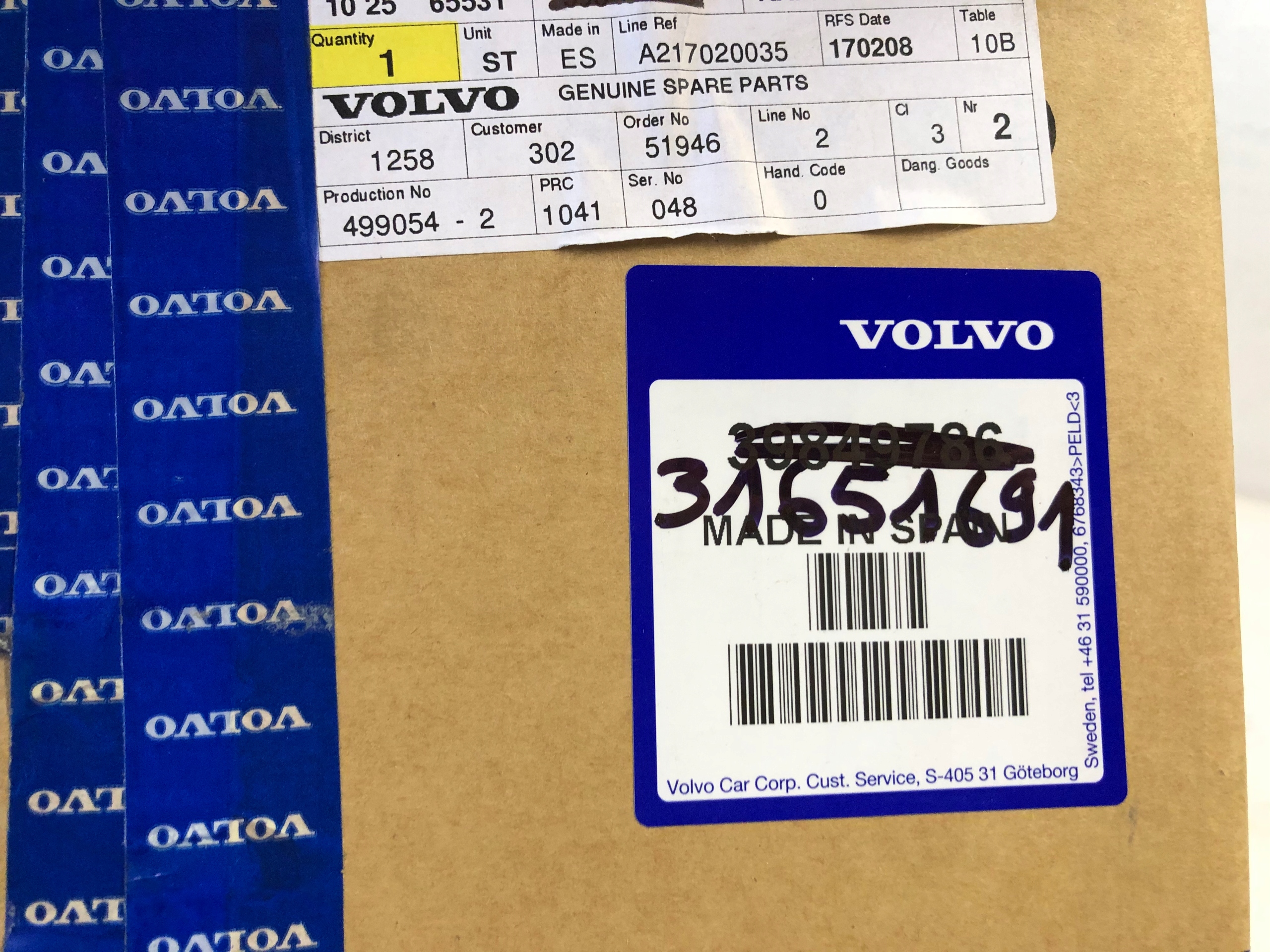 | Каталожный номер детали: | 31651691 |