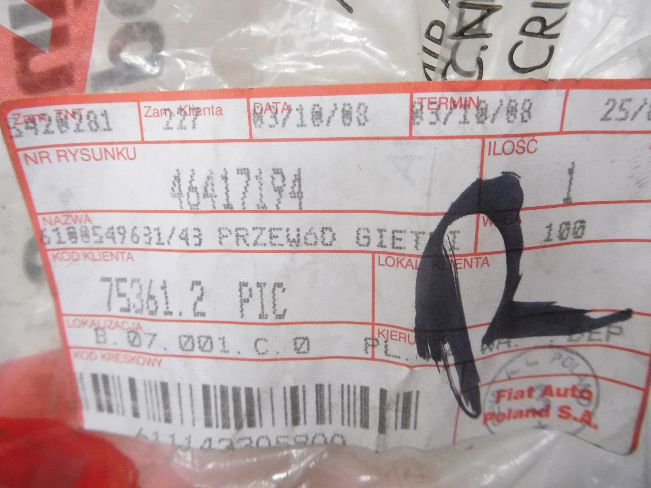 Шланг радиатора fiat palio оригинальный номер 46417194