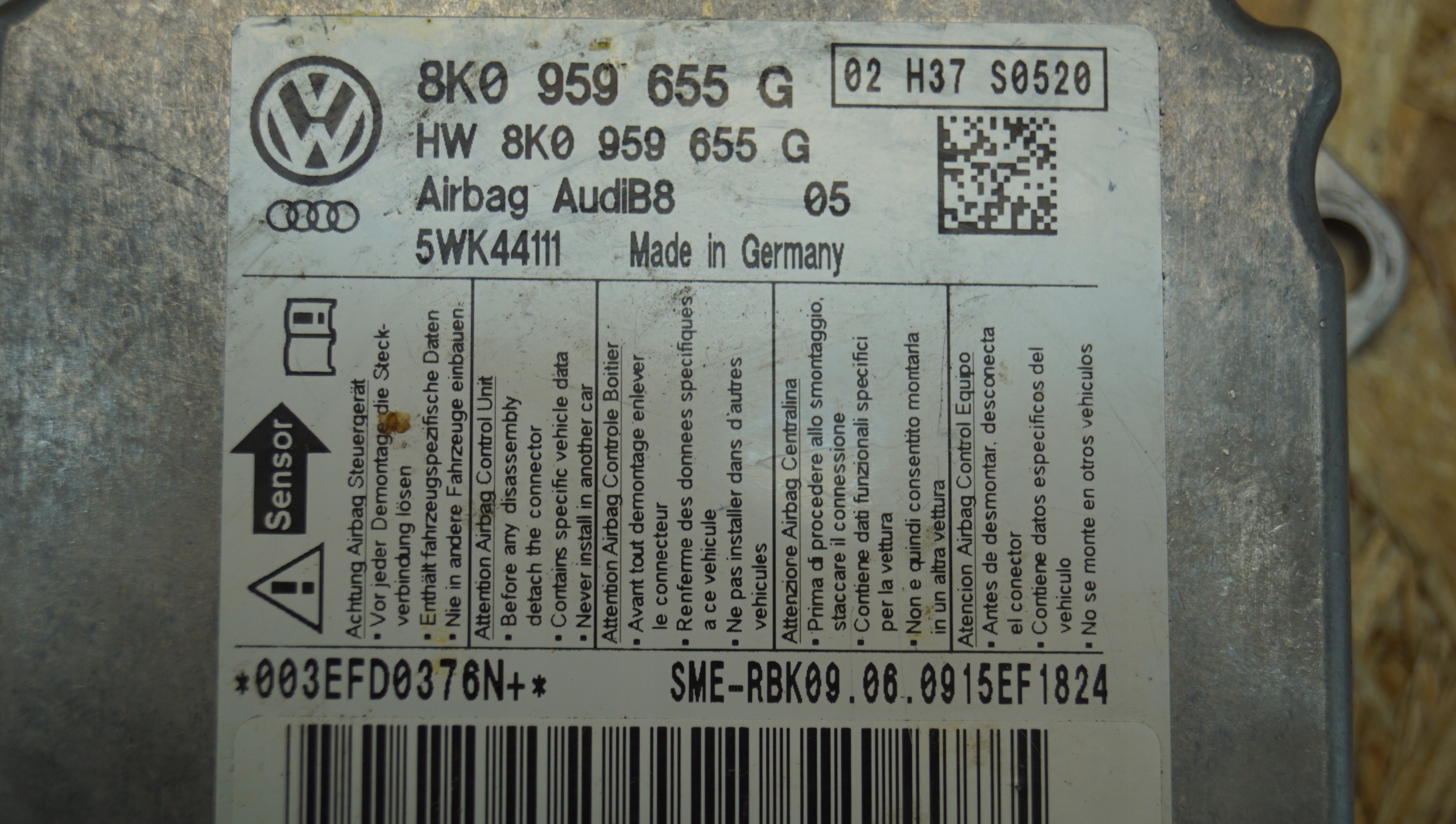 | Каталожный номер детали: | 8K0959655G |