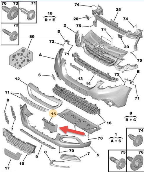 Заглушка решётка радиатора pod радар peugeot 2008 i