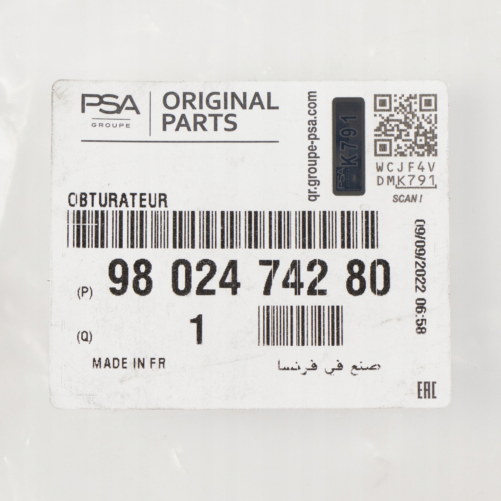 | Каталожный номер детали: | 9802474280 |