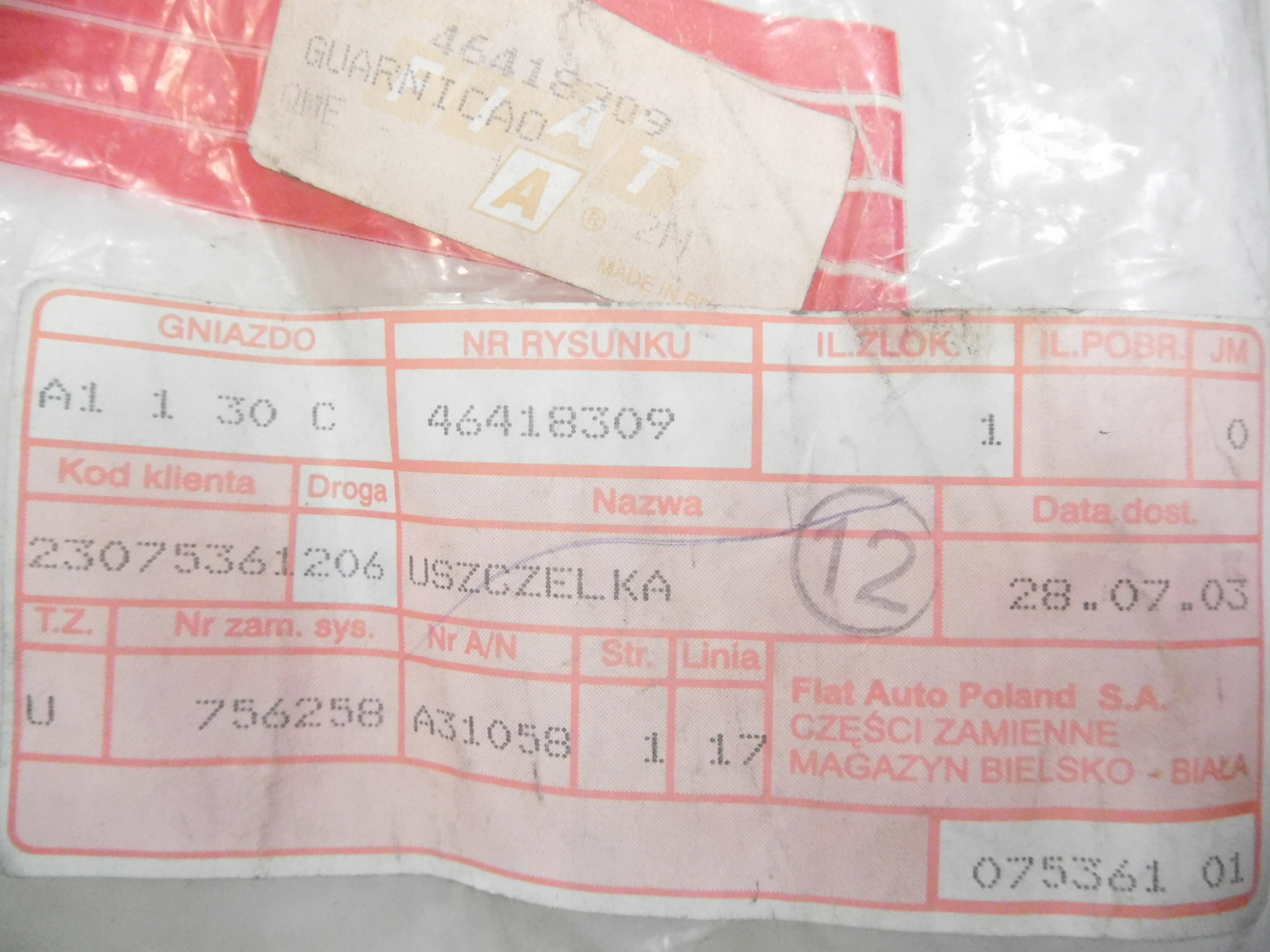| Каталожный номер детали: | 46418309 |