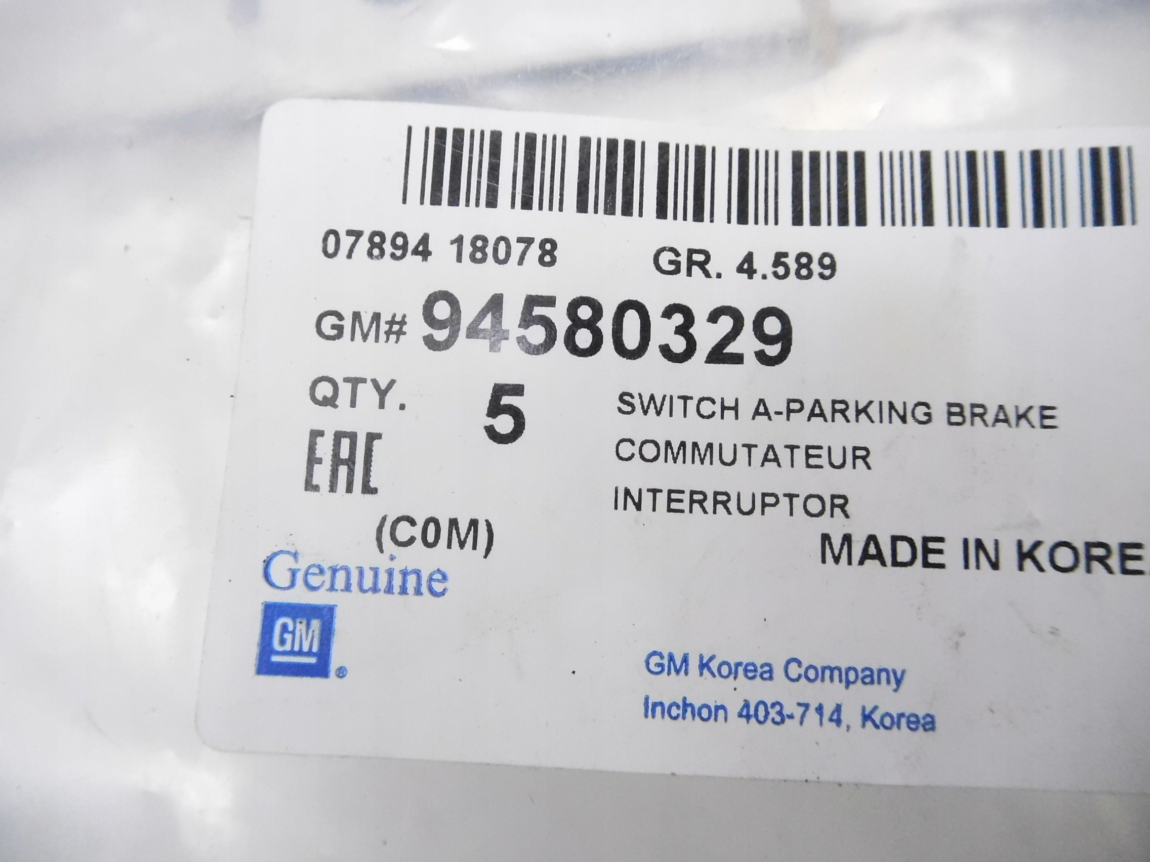 Переключатель, тормоз стояночный chevrolet spark оригинальный номер 94580329