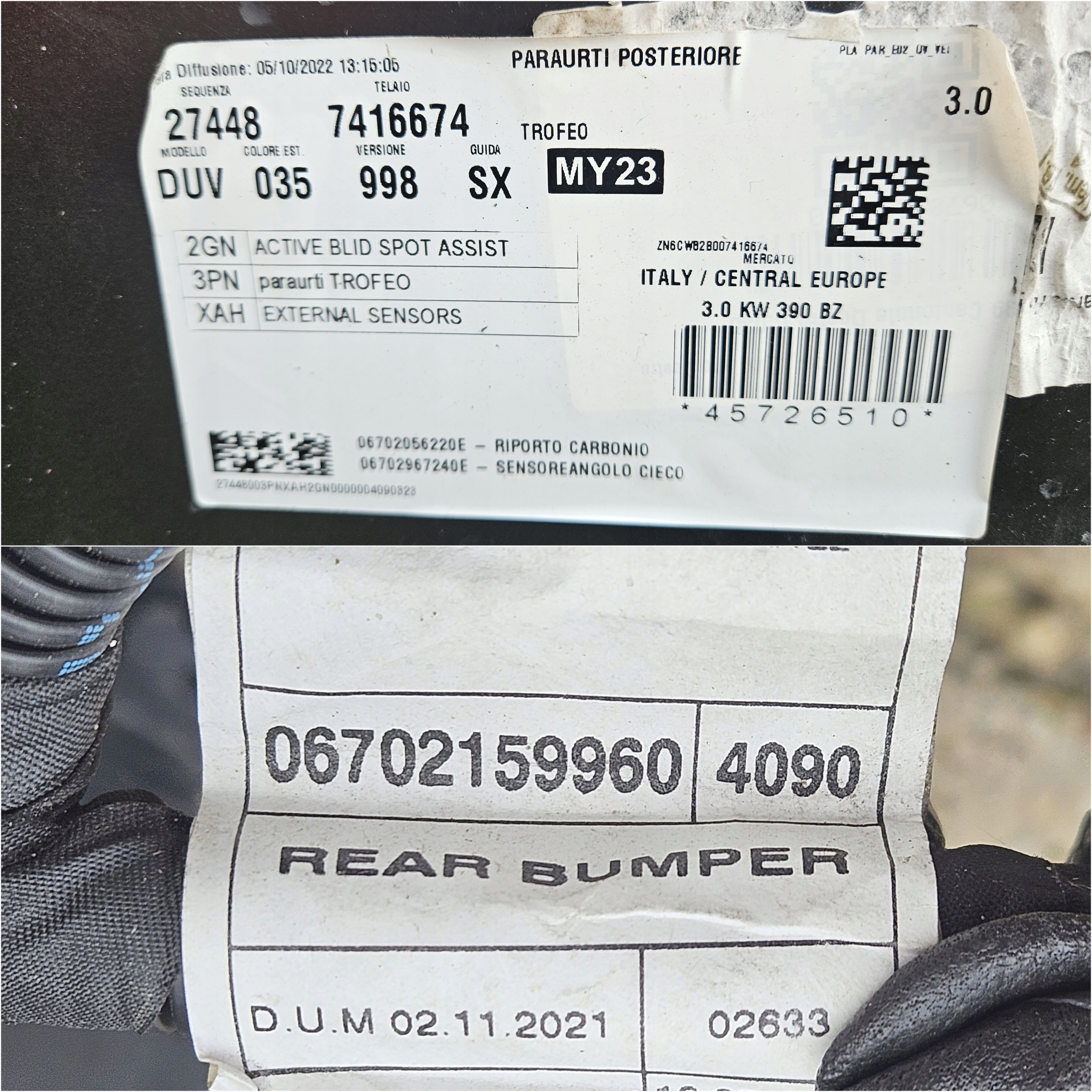 Бампер задний maserati grecale trofeo карбон 3.0 2023- 670157362 670181333